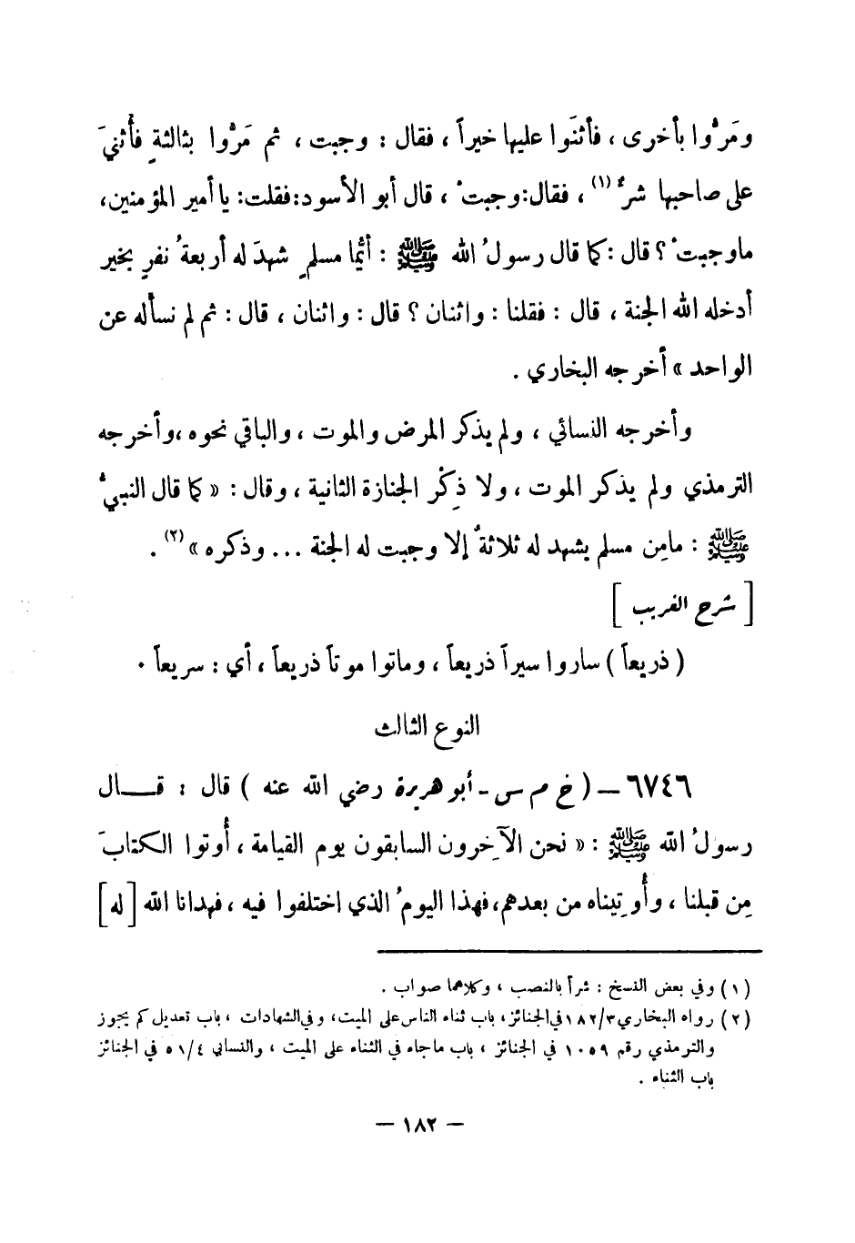 وبلفظ: «نحن الآخرون السابقون يوم القيامة، بيد أنهم أوتوا الكتاب من قبلنا وأوتيناه من بعدهم، وهذا يومهم الذي فرض عليهم فاختلفوا فيه، فهدانا الله له، فالناس لنا فيه تبع، اليوم لنا، ولليهود غدا، واللنصارى بعد غد.»