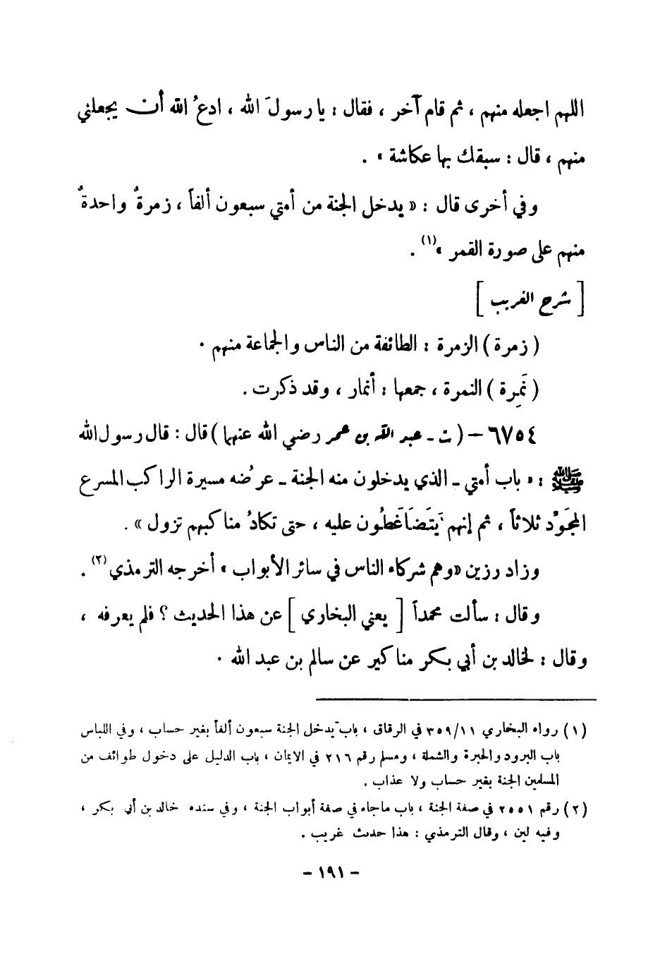 وقال: سألت محمداً [يعني البخاري] عن هذا الحديث؟ فلم يعرفه، وقال: لخالد ابن أبي بكر مناكير عن سالم بن عبد الله. -[192]-
