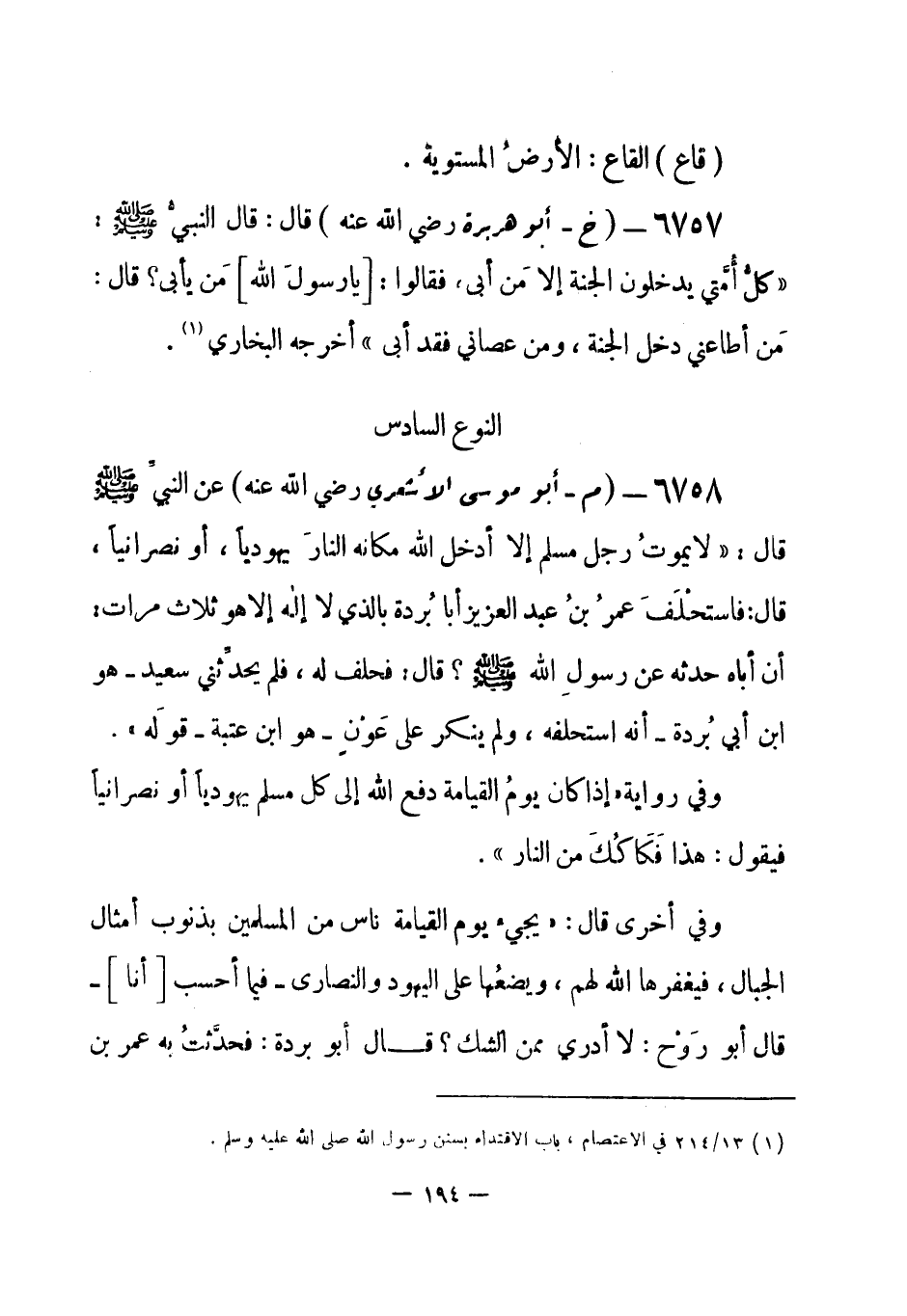 (¬1) 13 / 214 في الاعتصام، باب الاقتداء بسنن رسول الله صلى الله عليه وسلم.