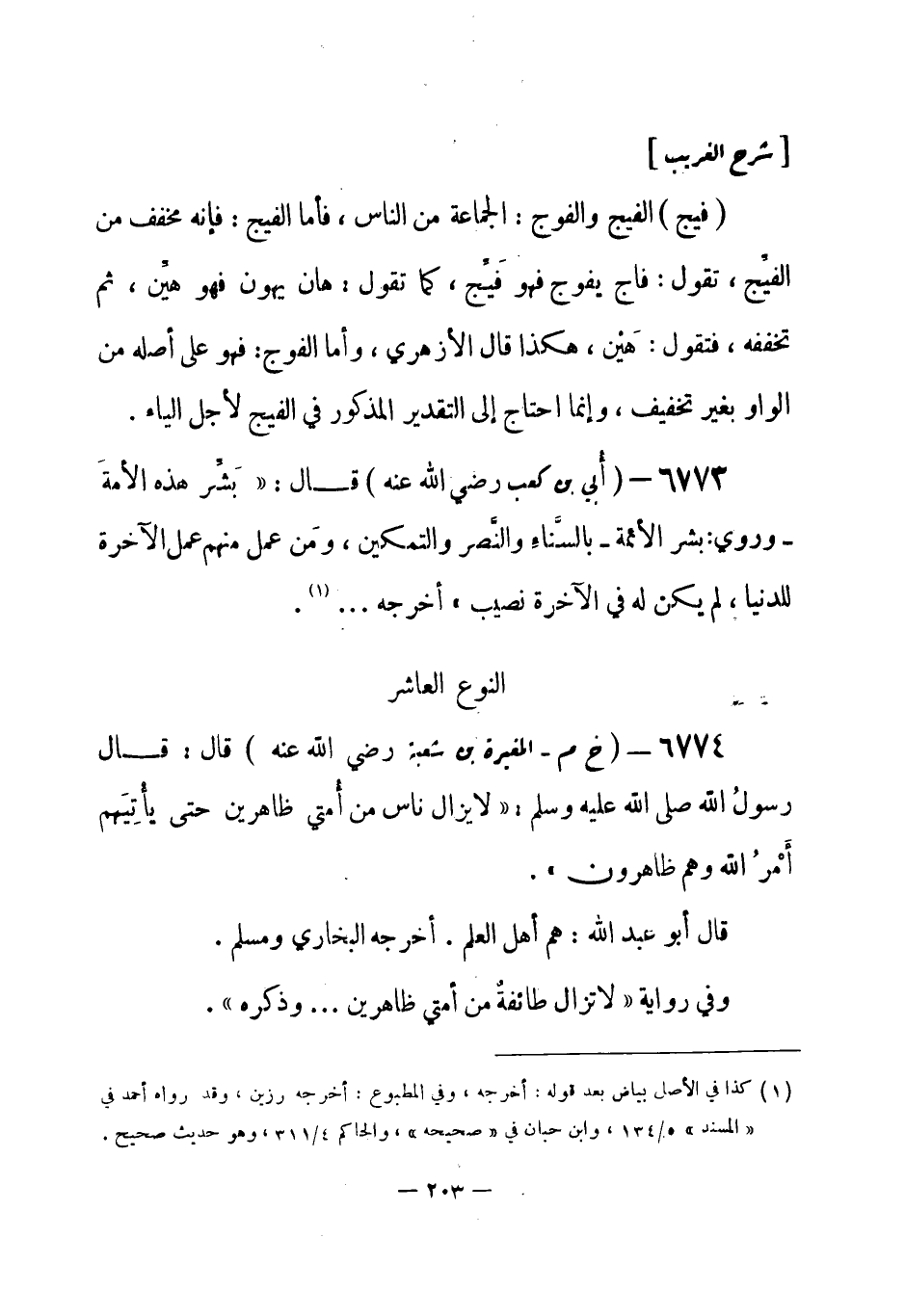 (¬1) رواه البخاري 13 / 249 في الاعتصام، باب قول النبي صلى الله عليه وسلم: " لا تزال طائفة من أمتي ظاهرين على الحق يقاتلون "، وفي الأنبياء، باب سؤال المشركين أن يريهم النبي صلى الله عليه وسلم آية فأراهم انشقاق القمر، وفي التوحيد، باب قول الله تعالى: {إنما قولنا لشيء إذا أردناه أن نقول له كن فيكون} ، ومسلم رقم (1921) في الإمارة، باب قوله صلى الله عليه وسلم: " لا تزال طائفة من أمتي ظاهرين عل الحق لا يضرهم من خالفهم ".