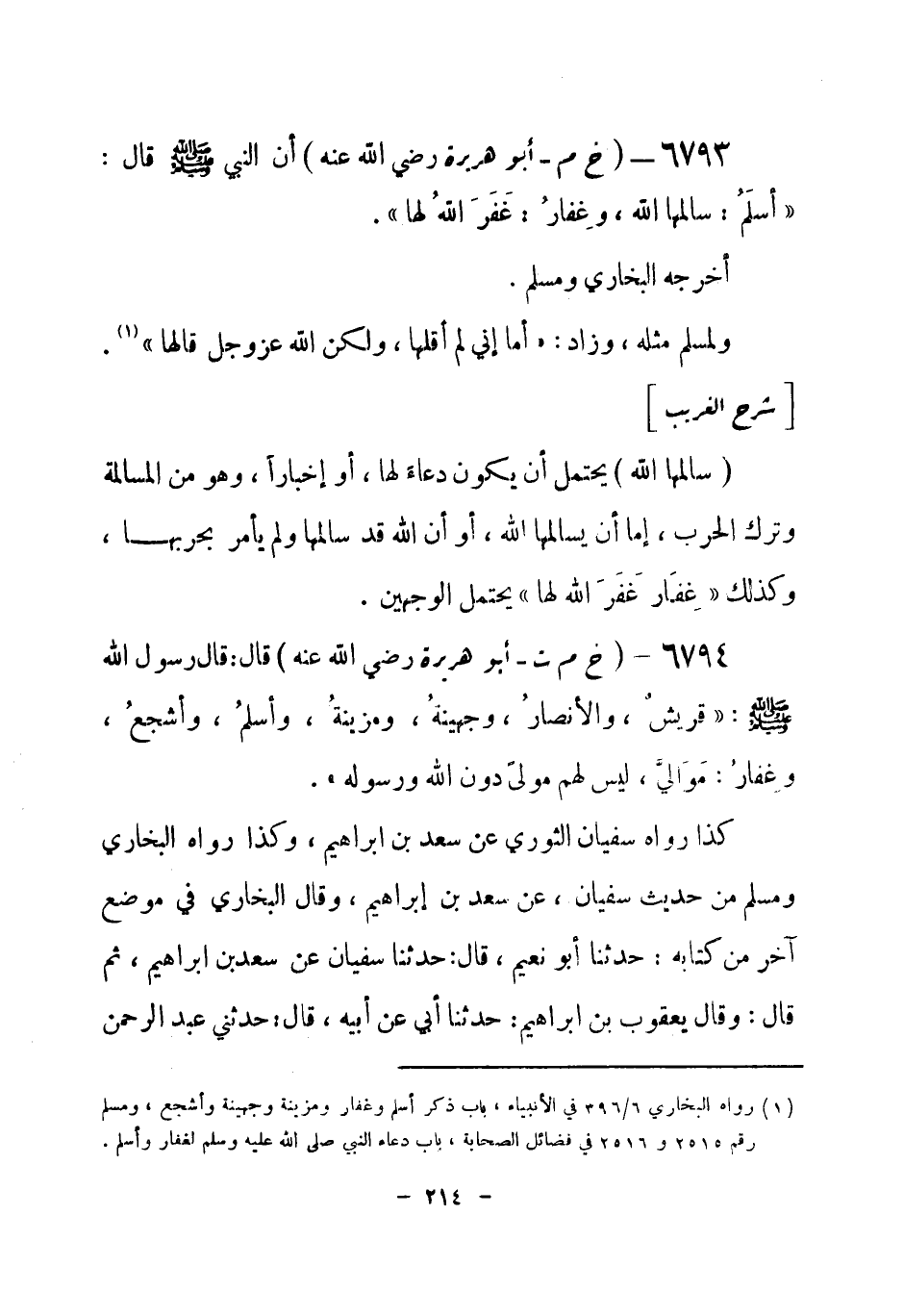 (¬1) رواه البخاري 6 / 395 في الأنبياء، باب ذكر أسلم وغفار ومزينة وجهينة وأشجع، ومسلم رقم (2520) و (2521) في فضائل الصحابة، باب من فضائل أسلم وغفار وجهينة ... ، والترمذي رقم (3945) في المناقب، باب مناقب غفار وجهينة.
