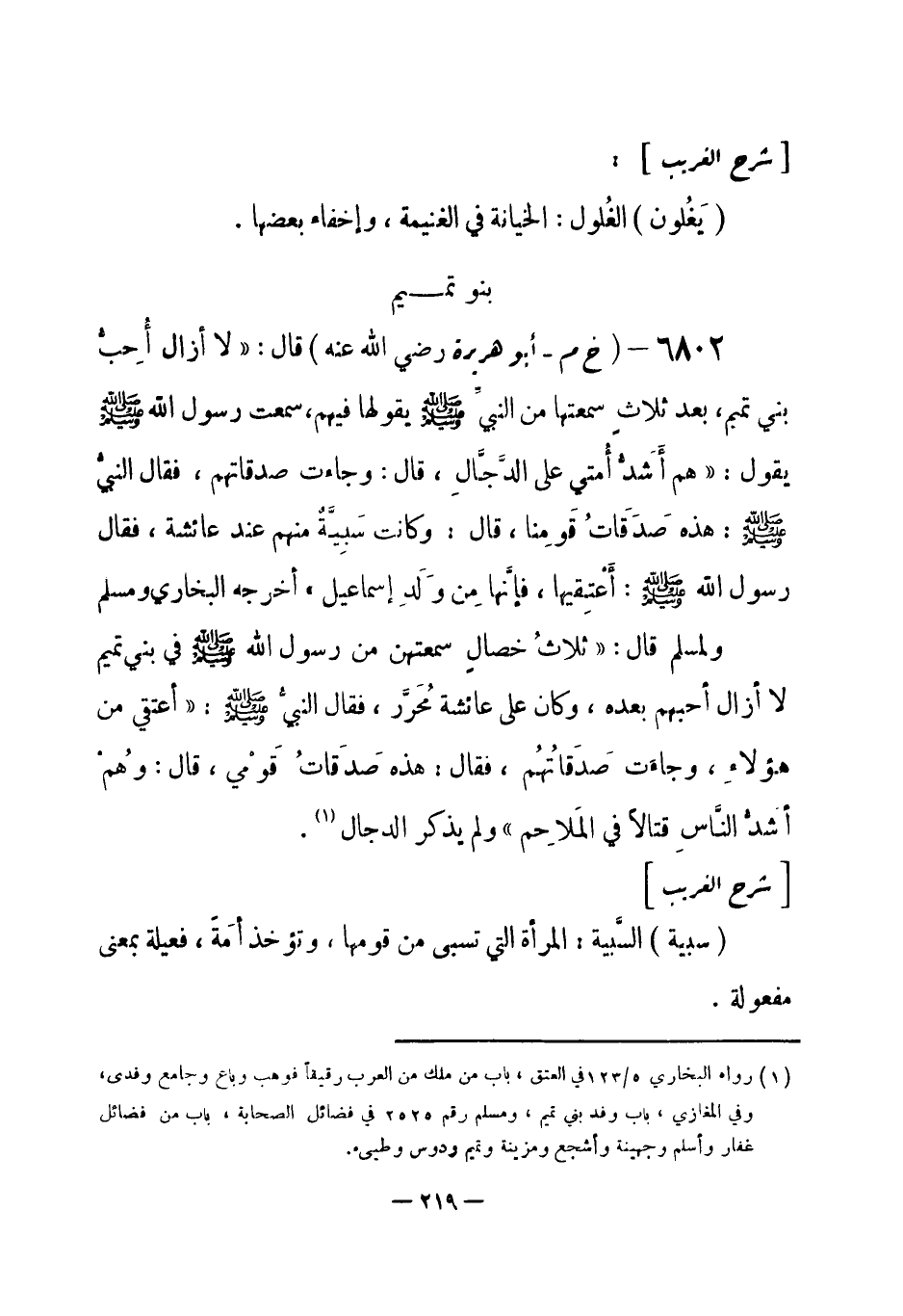 (¬1) رواه البخاري 5 / 123 في العتق، باب من ملك من العرب رقيقاً فوهب وباع وجامع وفدى، وفي المغازي، باب وفد بني تميم، ومسلم رقم (2525) في فضائل الصحابة، باب من فضائل غفار وأسلم وجهينة وأشجع ومزينة وتميم ودوس وطيء.
