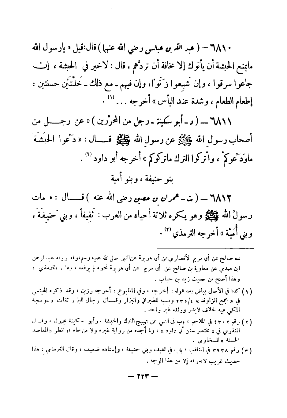 6812 - (ت) عمران بن حصين - رضي الله عنه - قال: «مات رسولُ الله - صلى الله عليه وسلم- وهو يكره ثلاثة أحياء من العرب: ثَقِيفاً، وبني حَنِيفَةَ، وبني أُمَيَّة» أخرجه الترمذي (¬1) .