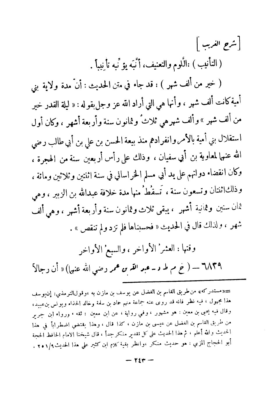 6839 - (خ م ط د) عبد الله بن عمر - رضي الله عنهما -: «أن رجالاً -[244]- من أصحاب النبيِّ - صلى الله عليه وسلم- أُرُوا ليلة القَدْرِ في المنام، في السَّبْعِ الأواخِرِ، فقال النبيُّ - صلى الله عليه وسلم-: أرى رُؤياكم تَوَاطَأتْ في السَّبْعِ الأواخِرِ، فمن كان مُتَحَرِّيها فَلْيَتَحَرَّها في السَّبع الأواخر» وفي رواية قال: رأى رجل أن ليلة القدر، ليلة سبع وعشرين، فقال النبيُّ - صلى الله عليه وسلم-: «أرى رؤياكم في العَشْرِ الأوَاخِرِ، فاطْلُبُوها في الوتر» وفي رواية: أن رسولُ الله - صلى الله عليه وسلم- قال في ليلة القدر: «إنَّ ناساً منكم قد أُرُوا أنها في السبع الأُوَل، وأُرِيَ ناس منكم أنها في السَّبْعِ الغَوَابِر، فالتمسوها في العشر الغوابر» . أخرجه البخاري ومسلم.