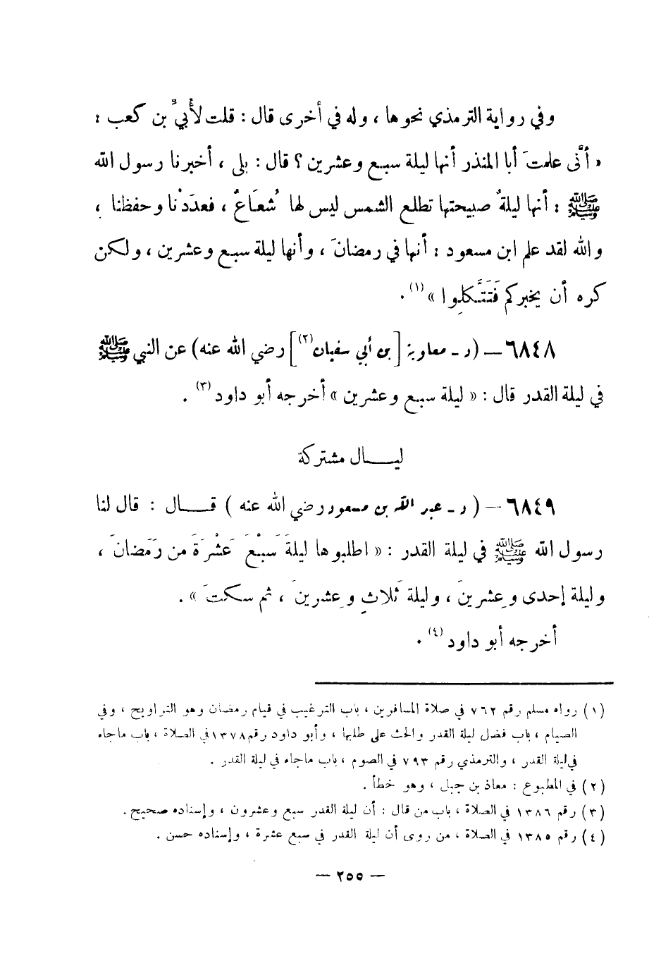 6848 - (د) معاوية [بن أبي سفيان (¬1) ]- رضي الله عنه - عن النبيِّ - صلى الله عليه وسلم- في ليلة القدر قال: «ليلة سبع وعشرين» أخرجه أبو داود (¬2) .