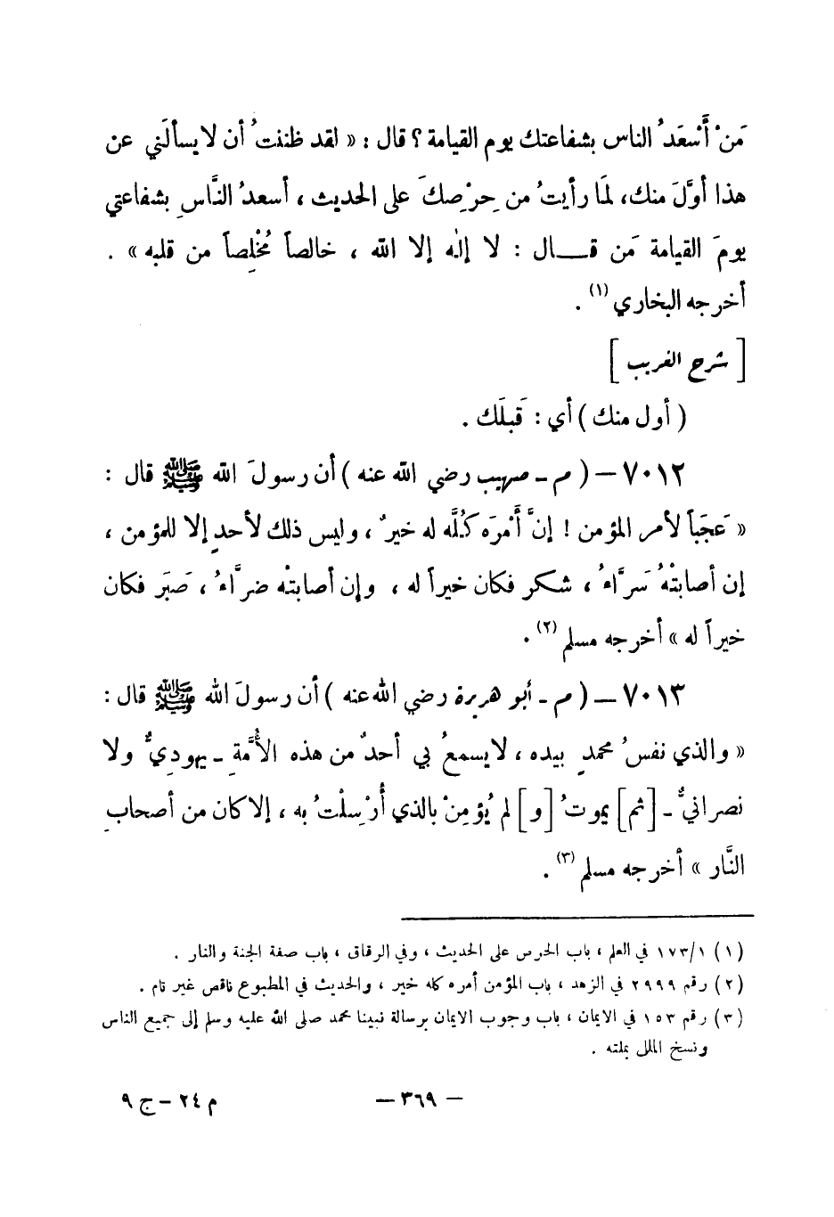 (¬1) رقم (2999) في الزهد، باب المؤمن أمره كله خير، والحديث في المطبوع ناقص غير تام.