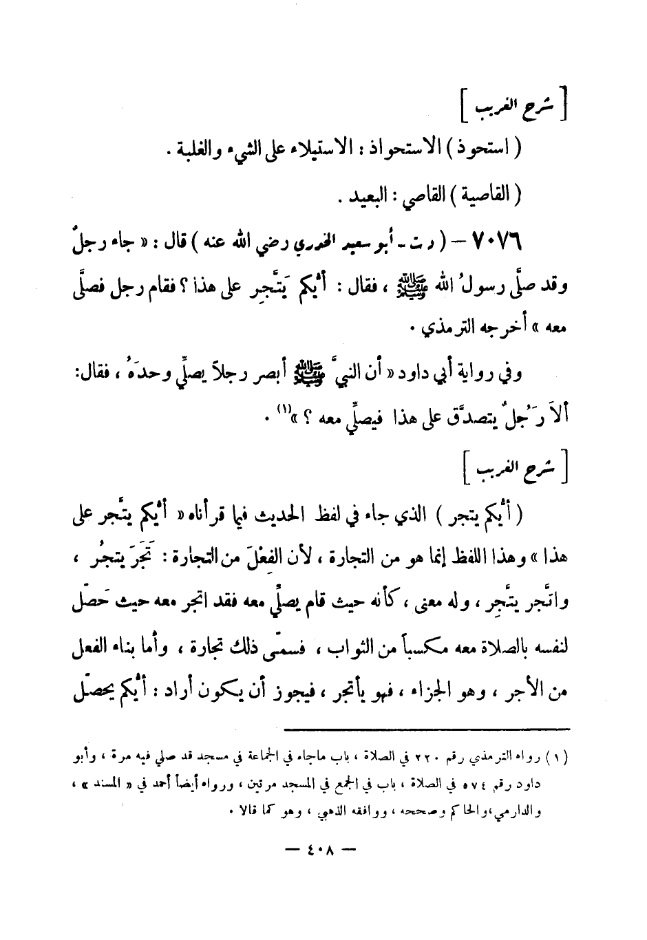 7076 - (د ت) أبو سعيد الخدري - رضي الله عنه - قال: «جاء رجل وقد صلَّى رسولُ الله - صلى الله عليه وسلم-، فقال: أيُّكم يَتَّجِر على هذا؟ فقام رجل فصلَّى معه» أخرجه الترمذي.