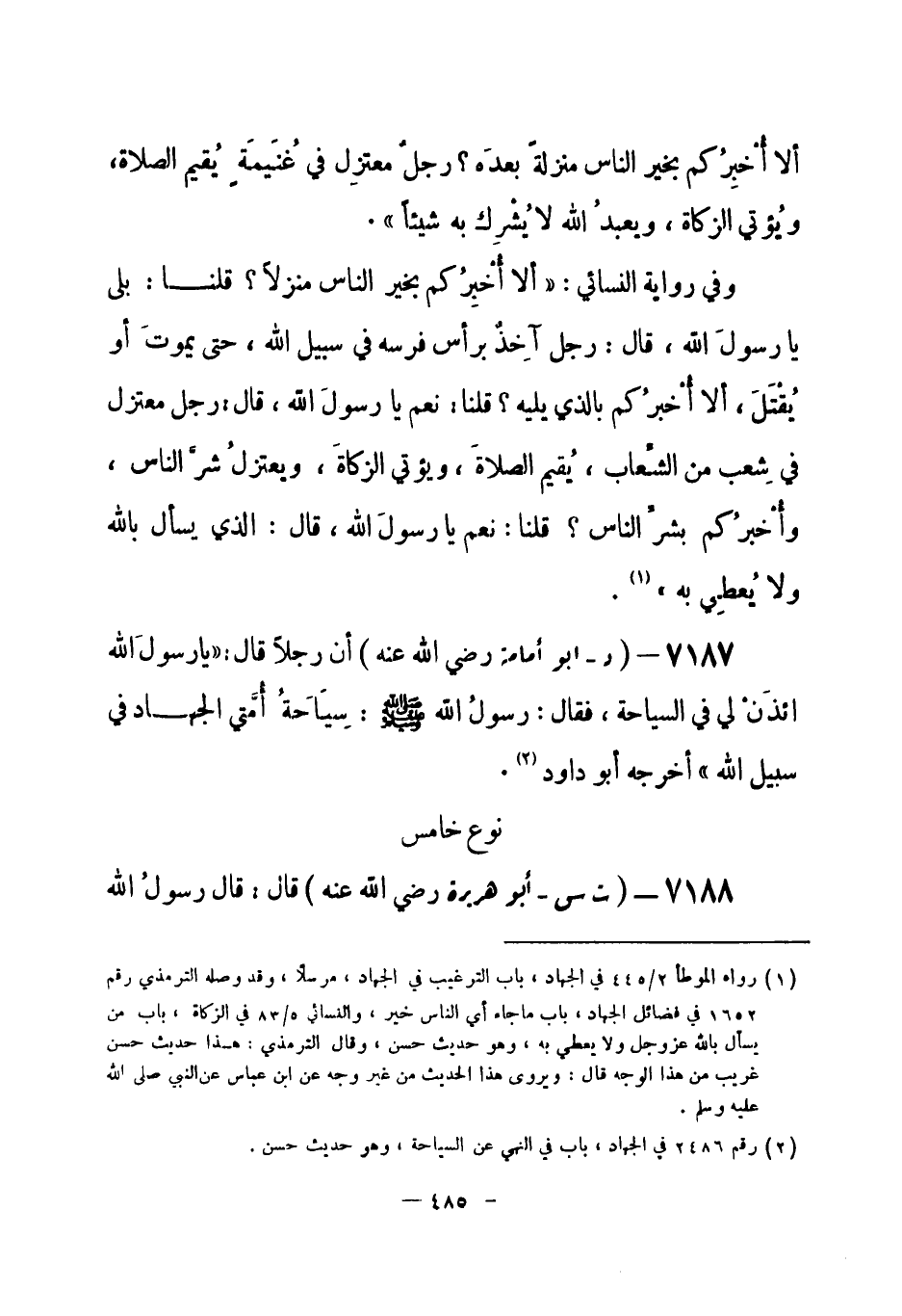 (¬1) رقم (2486) في الجهاد، باب في النهي عن السياحة، وهو حديث حسن.