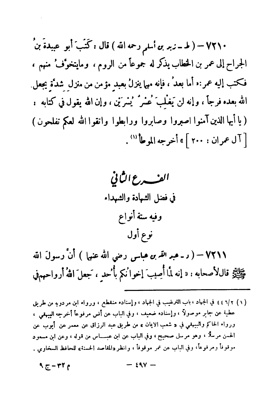 الفرع الثاني: في فضل الشهادة والشهداء، وفيه ستة أنواع