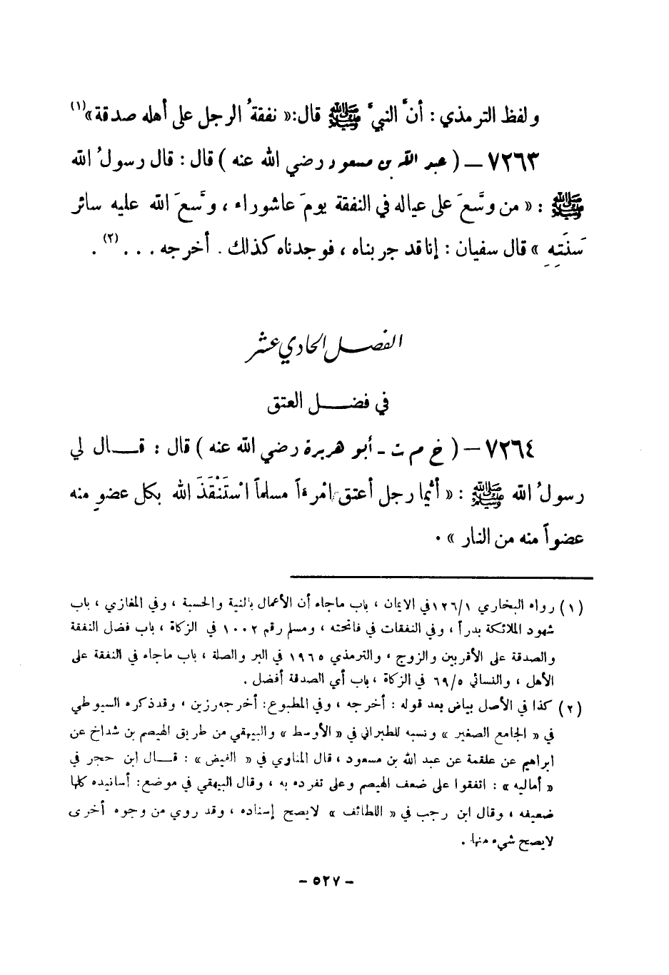 (¬1) رواه البخاري 5 / 103 و 104 في العتق، باب ما جاء في العتق وفضله، والأيمان والنذور، باب قول الله تعالى: {أو تحرير رقبة} وأي الرقاب أزكى، ومسلم رقم (1509) في العتق، والترمذي رقم (1451) في الأيمان والنذور، باب ما جاء في ثواب من أعتق رقبة.