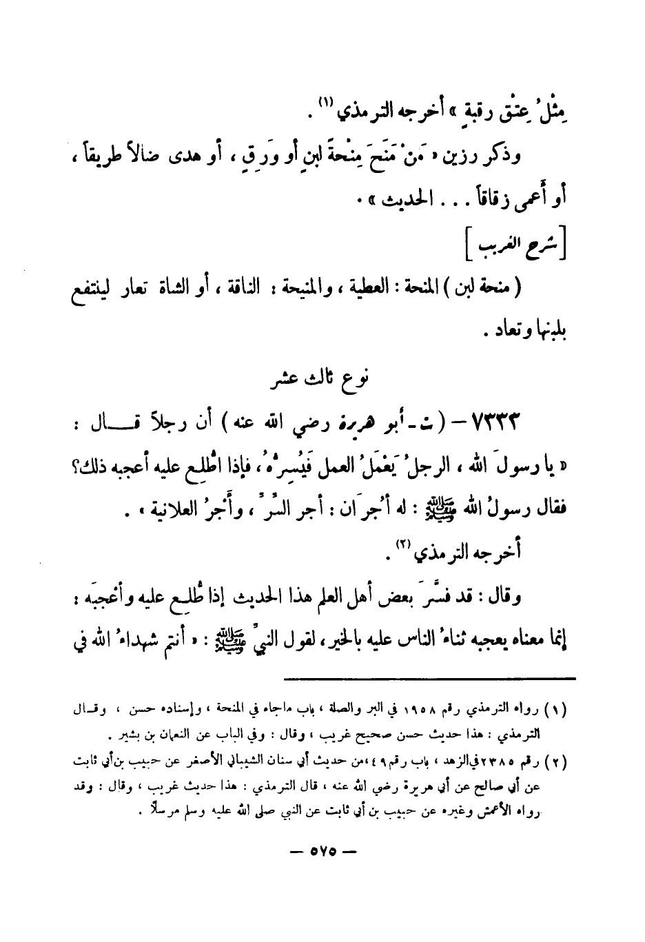 7333 - (ت) أبو هريرة - رضي الله عنه -: أن رجلاً قال: يا رسولَ الله، الرجلُ يَعْمَلُ العمل فَيُسِرُّهُ، فإذا اطُّلِع عليه أعجبه ذلك؟ فقال رسولُ الله - صلى الله عليه وسلم-: «له أجران: أجر السِّرِّ، وأجْرُ العلانية» . أخرجه الترمذي (¬1) .