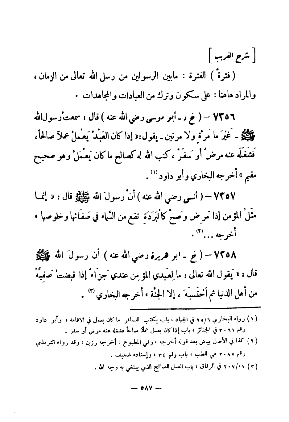 (¬1) رواه البخاري 6 / 95 في الجهاد، باب يكتب للمسافر ما كان يعمل في الإقامة، وأبو داود رقم (3091) في الجنائز، باب إذا كان يعمل عملاً صالحاً فشغله عنه مرض أو سفر.