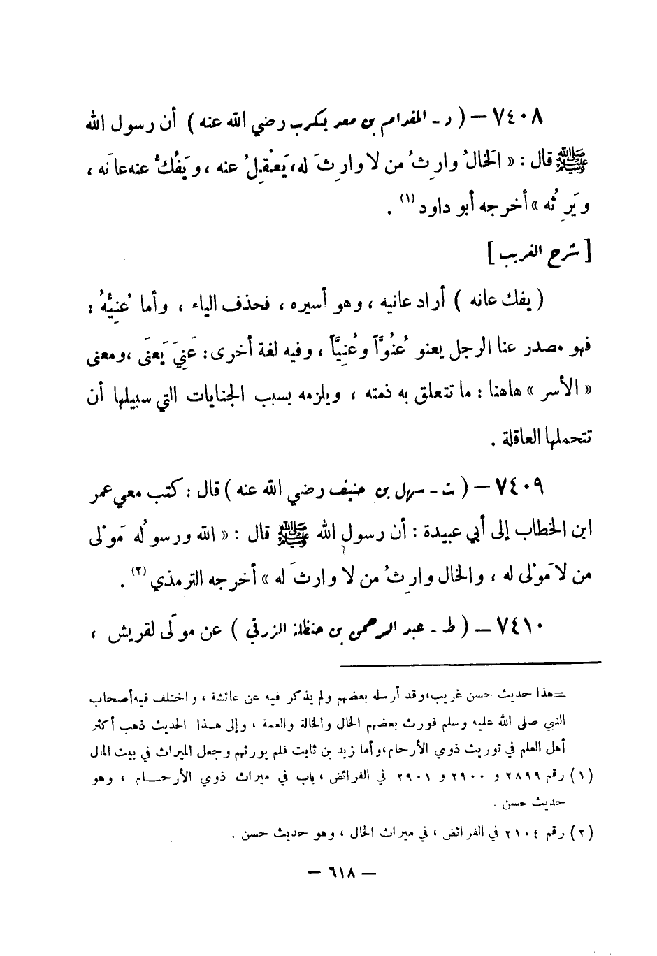 (¬1) رقم (2899) و (2900) و (2901) في الفرائض، باب في ميراث ذوي الأرحام، وهو حديث حسن.