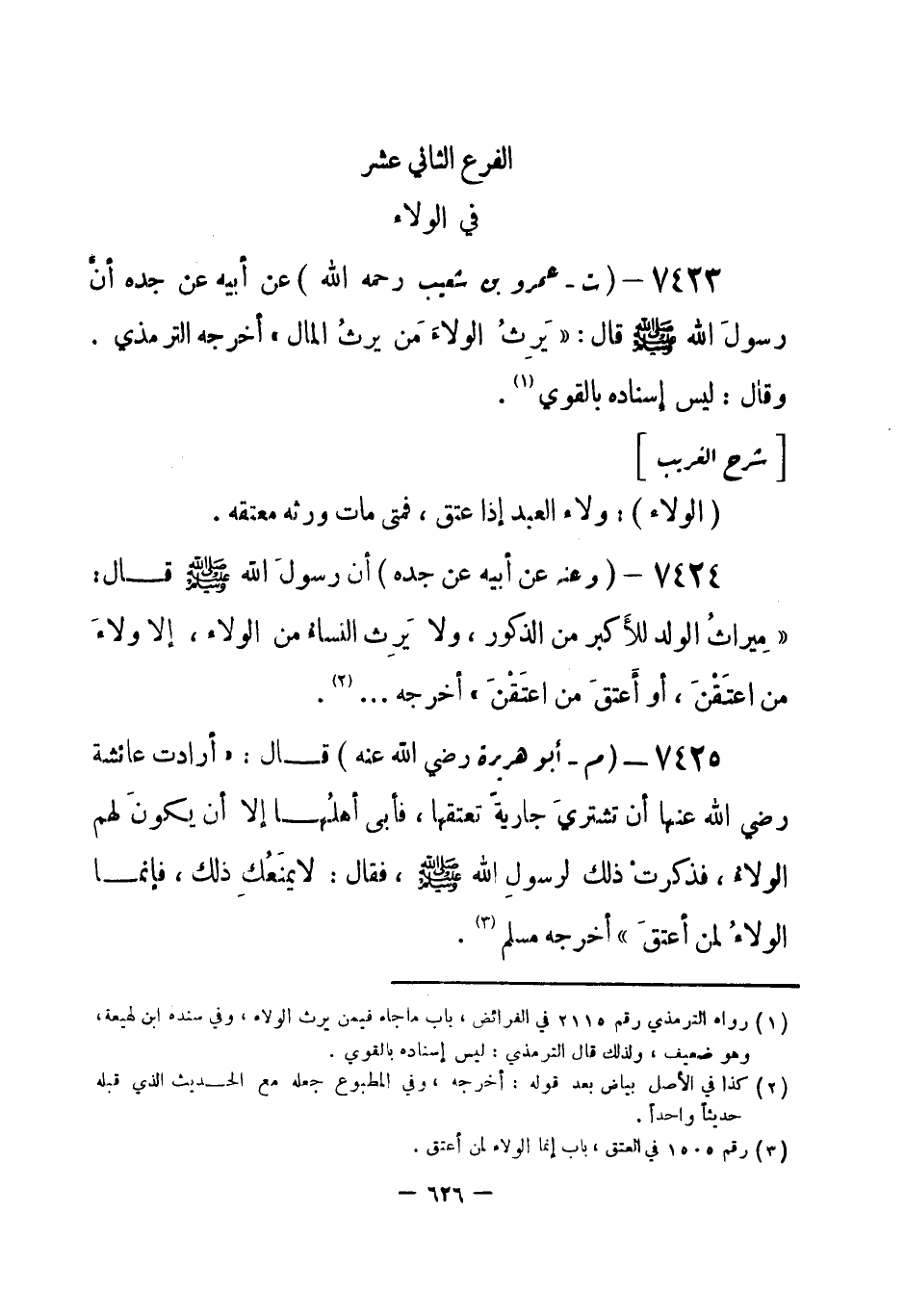 (¬1) رواه الترمذي رقم (2115) في الفرائض، باب ما جاء فيمن يرث الولاء، وفي سنده ابن لهيعة، وهو ضعيف، ولذلك قال الترمذي: ليس إسناده بالقوي.