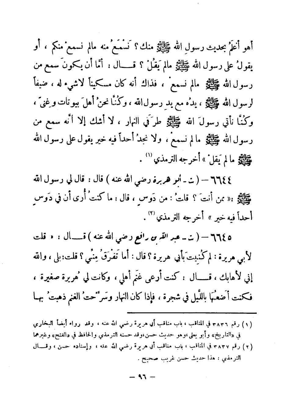 Mإسناده حسن: أخرجه الترمذي (3838) قال: حدثنا بشر بن آدم، ابن بنت أزهر السمان،قال: حدثنا عبد الصمد بن عبد الوارث. قال: حدثنا أبو خلدة. قال: حدثنا أبو العالية، فذكره.