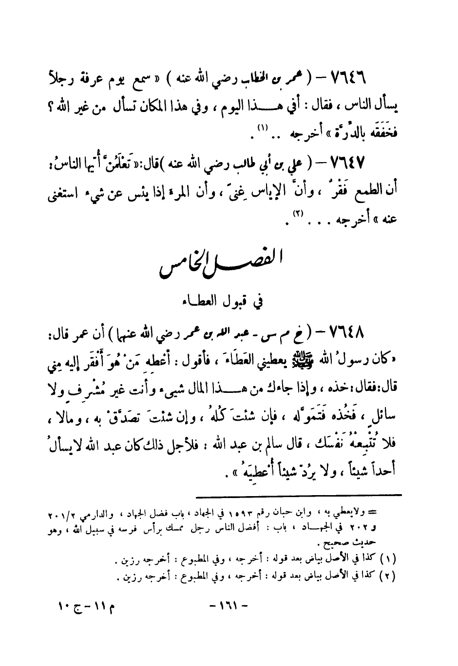 (¬1) رواه البخاري 13 / 134 و 135 في الأحكام، باب رزق الحكام والعاملين عليها، وفي الزكاة، باب من أعطاه الله شيئاً من غير مسألة ولا إشراف، ومسلم رقم (1045) في الزكاة، باب إباحة الأخذ لمن أعطى من غير مسألة ولا إشراف، والنسائي 5 / 105 في الزكاة، باب من آتاه الله مالاً من غير مسألة.