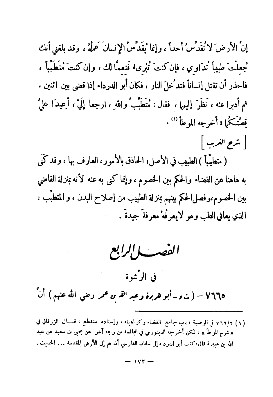 7665 - (ت د) أبو هريرة وعبد الله بن عمر - رضي الله عنهم - أنَّ -[173]- رسولَ الله - صلى الله عليه وسلم-: «لَعَنَ الراشِي والمرتشي في الحكم» أخرجه الترمذي (¬1) . وأخرجه أبو داود عن ابن عمر وحده (¬2) .