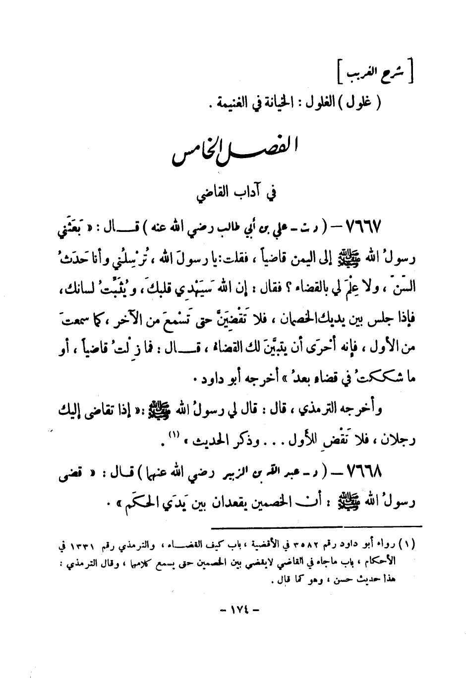 (¬1) رواه أبو داود رقم (3582) في الأقضية، باب كيف القضاء، والترمذي رقم (1331) في الأحكام، باب ما جاء في القاضي لا يقضي بين الخصمين حتى يسمع كلامهما، وقال الترمذي: هذا حديث حسن، وهو كما قال.
