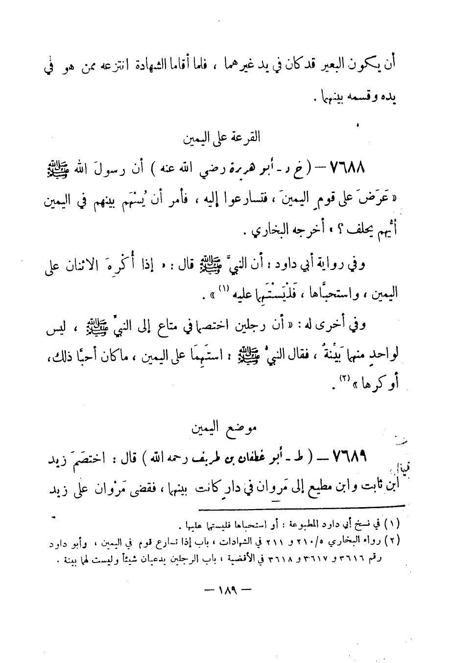 (¬2) رواه البخاري 5 / 210 و 211 في الشهادات، باب إذا تسارع قوم في اليمين، وأبو داود رقم (3616) و (3617) و (3618) في الأقضية، باب الرجلين يدعيان شيئاً وليست لهما بينة.
