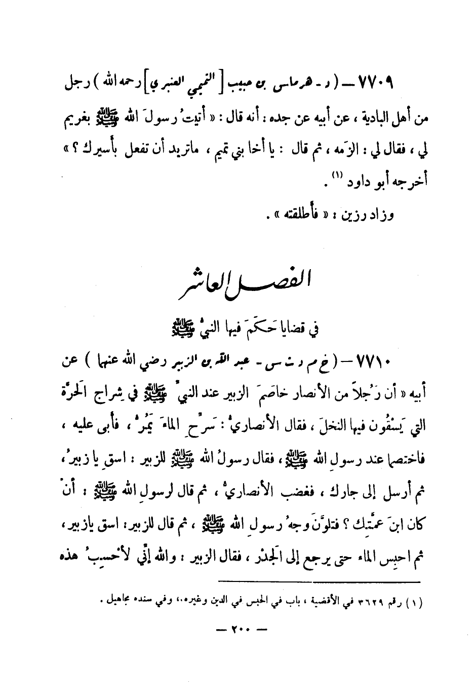(¬1) رواه البخاري 5 / 26 - 29 في الشرب، باب سكر الأنهار، وباب شرب الأعلى قبل الأسفل، وباب شرب الأعلى إلى الكعبين، وفي الصلح، باب إذا أشار الإمام بالصلح فأبى حكم عليه بالحكم المبين، وفي تفسير سورة النساء، باب {فلا وربك لا يؤمنون حتى يحكموك فيما شجر بينهم} ، ومسلم رقم (2357) في الفضائل، باب وجوب اتباعه صلى الله عليه وسلم، وأبو داود رقم (3637) في الأقضية، باب أبواب من القضاء، والترمذي رقم (1363) في الأحكام، باب ما جاء في الرجلين يكون أحدهما أسفل من الآخر في الماء، والنسائي 8 / 245 في القضاة، باب إشارة الحاكم بالرفق.