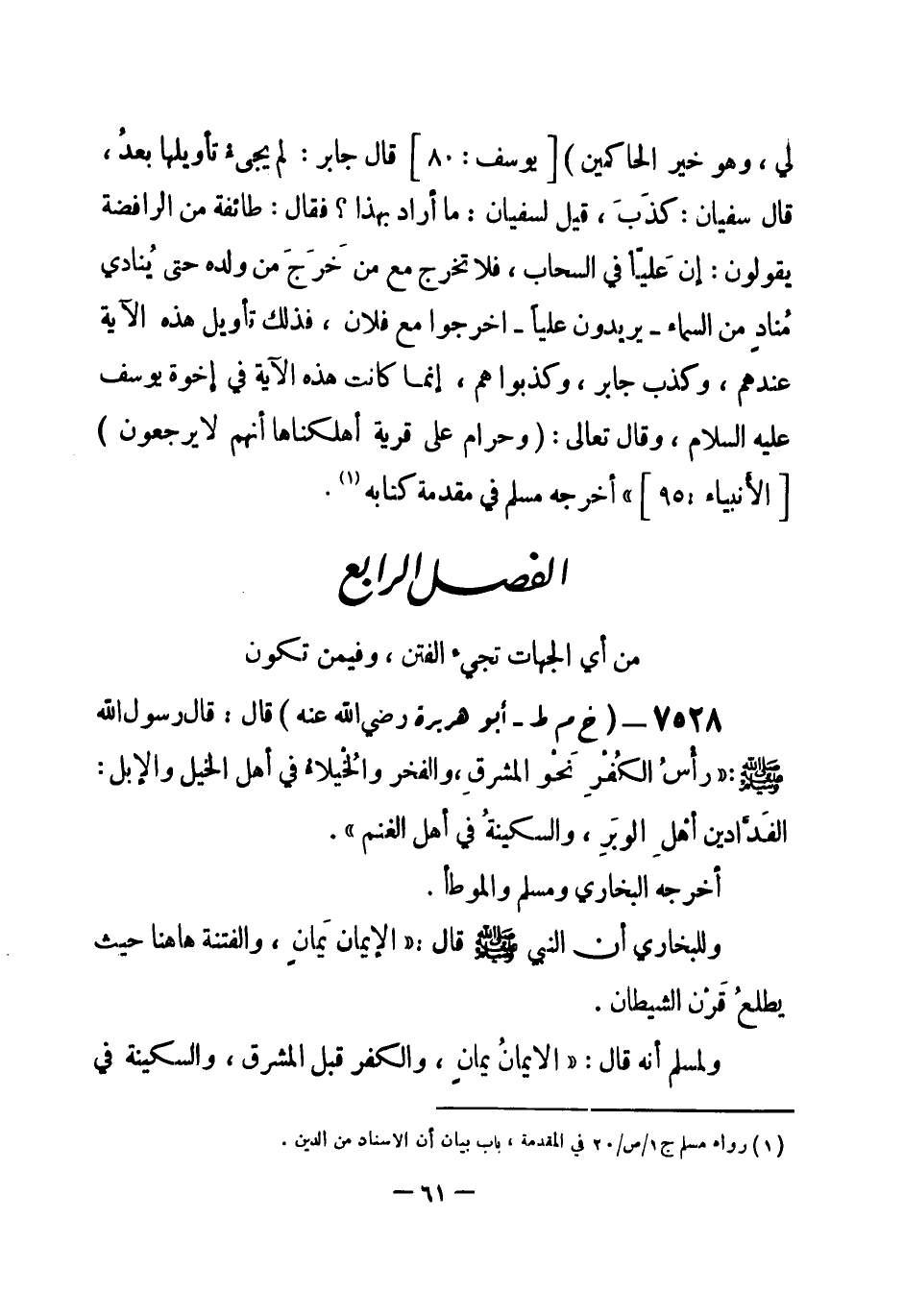الفصل الرابع: من أي الجهات تجيء الفتن، وفيمن تكون