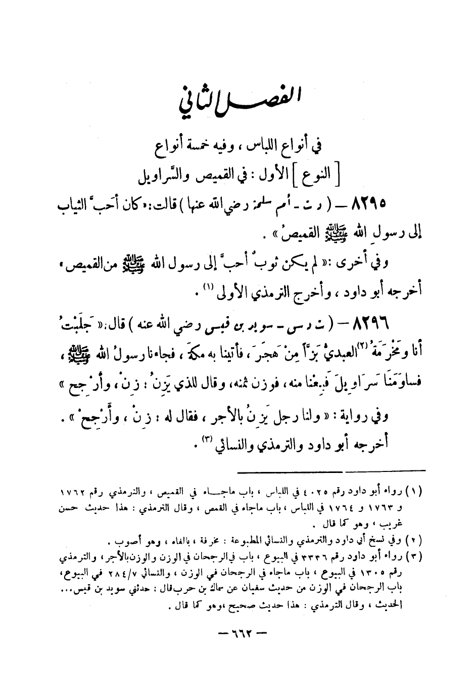 8296 - (ت د س) سويد بن قيس - رضي الله عنه - قال: «جَلَبْتُ أنا ومَخْرَمَةُ (¬1) العبديُّ بَزَّاً مِن هَجَر، فأتينا به مكة، فجاءنا رسولُ الله - صلى الله عليه وسلم-، فساوَمَنا سَرَاويلَ فبِعْنا منه، فوزن ثمنه، وقال للذي يزِنُ: زِنْ، وأرْجِح» .