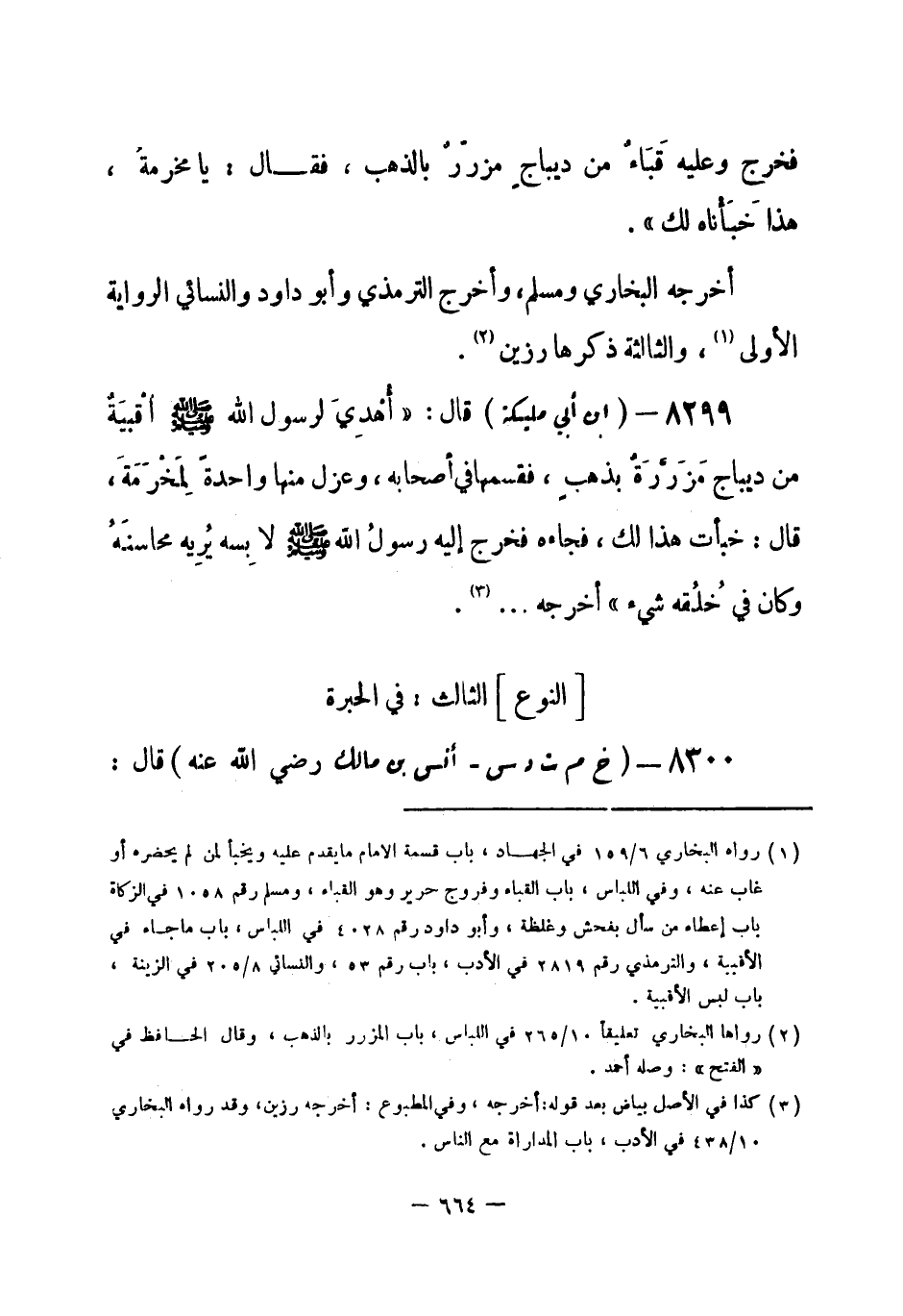 8300 - (خ م ت د س) أنس بن مالك - رضي الله عنه - قال: -[665]- «كان أحبَّ ما لرسول الله - صلى الله عليه وسلم- أن يلبَسه الحِبَرَةُ» أخرجه البخاري ومسلم والترمذي والنسائي.
