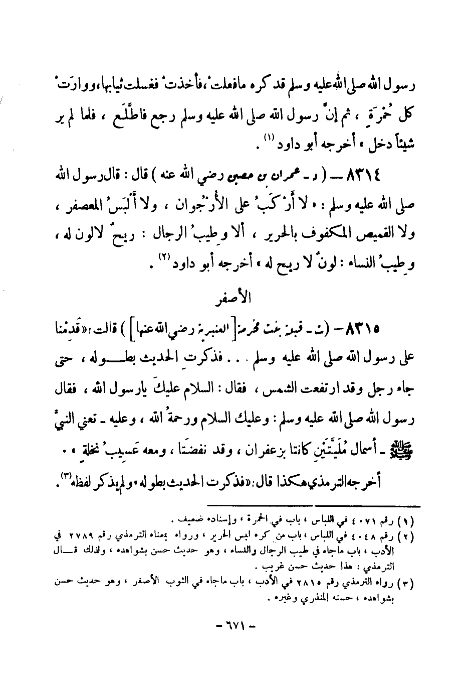 (¬1) رواه الترمذي رقم (2815) في الأدب، باب ما جاء في الثوب الأصفر، وهو حديث حسن بشواهده، حسنه المنذري وغيره.