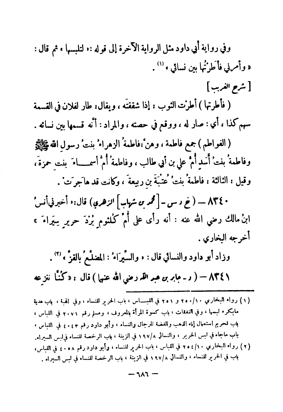 (¬1) رواه البخاري 10 / 254 في اللباس، باب الحرير للنساء، وأبو داود رقم (4058) في اللباس، باب في الحرير للنساء، والنسائي 8 / 197 في الزينة، باب الرخصة للنساء في لبس السيراء.