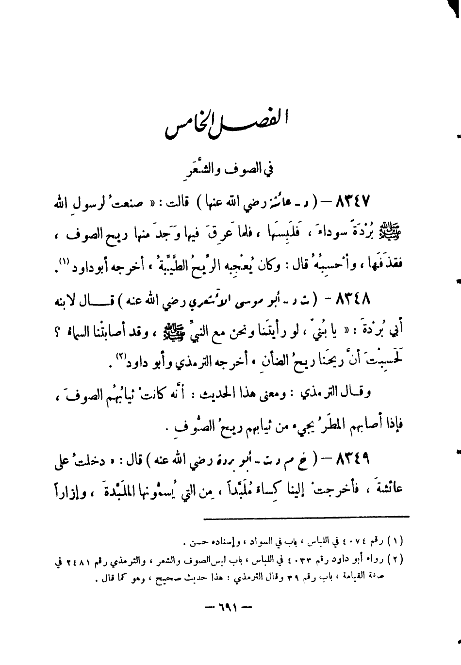 (¬1) رواه وأبو داود رقم (4033) في اللباس، باب لبس الصوف والشعر، والترمذي رقم (2481) في صفة القيامة، باب رقم (39) ، وقال الترمذي: هذا حديث صحيح، وهو كما قال.