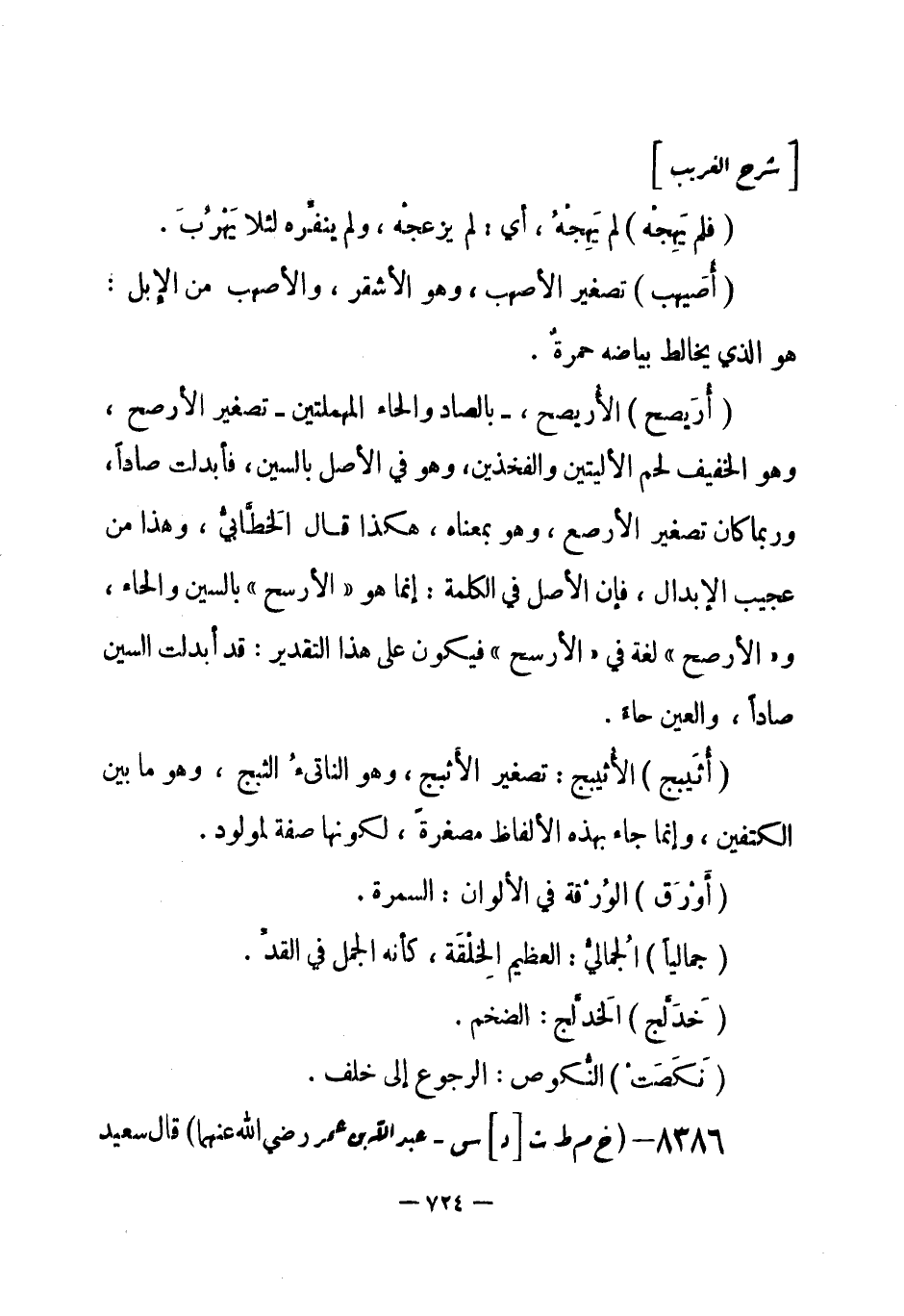 8386 - (خ م ط ت [د] س) عبد الله بن عمر - رضي الله عنهما - قال سعيد -[725]- ابن جبير: «سُئلتُ عن المتلاعنين في إمرةِ مُصعب بن الزبير: أيفرَّق بينهما؟ قال: فما دريتُ ما أقول، فمضيت إلى منزل ابن عمر بمكة، فقلت للغلام: استأذن لي، قال: إنه قائل، فسمع صوتي، فقال: ابن جبير؟ قلت: نعم، قال: ادخل، فو الله ما جاء بك هذه الساعة إلا حاجة، فدخلْتُ، فإذا هو مُفْترِش بَرذعَة له، متوسِّد وِسادة حشوها ليف، قلت: أبا عبد الرحمن، المتلاعنان أيُفرَّق بينهما؟ قال: سبحان الله! نعم، إن أول من سأل عن ذلك: فلان بن فلان، قال: يا رسولَ الله، أرأيتَ أنْ لو وجد أحدنا امرأته على فاحشة، كيف يصنع؟ إن تكلَّم تكلم بأمر عظيم، وإن سكتَ سكت على مثل ذلك، قال: فسكتَ النبي - صلى الله عليه وسلم- فلم يجبه، فلما كان بعد ذلك أتاه، فقال: إن الذي سألتُك عنه قد ابتليتُ به، فأنزل الله عز وجل هؤلاء الآيات في سورة النور {والذين يرمون أزواجهم} فتلاهن عليه، ووعظه وذكّره وأخبره: أن عذاب الدنيا أهونُ من عذاب الآخرة، فقال: لا، والذي بعثك بالحق ما كذبتُ عليها، ثم دعاها فوعظها، [وذكّرها] وأخبرها: أن عذاب الدنيا أهون من عذاب الآخرة، قالت: لا، والذي بعثك بالحق إنه لكاذب، فبدأ بالرجل، فشهد أربع شهادات بالله إنه لمن الصادقين، والخامسةُ: أن لعنة الله عليه إن كان من الكاذبين، ثم ثنَّى بالمرأة، فشهدت أربع شهادات بالله إنه -[726]- لمن الكاذبين، والخامسة: أن غضب الله عليها إن كان من الصادقين ثم فرق بينهما» .