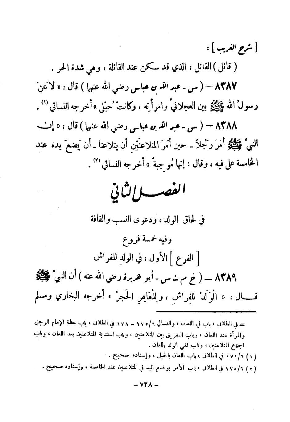 الفصل الثاني: في لحاق الولد، ودعوى النسب والقافة، وفيه خمسة فروع