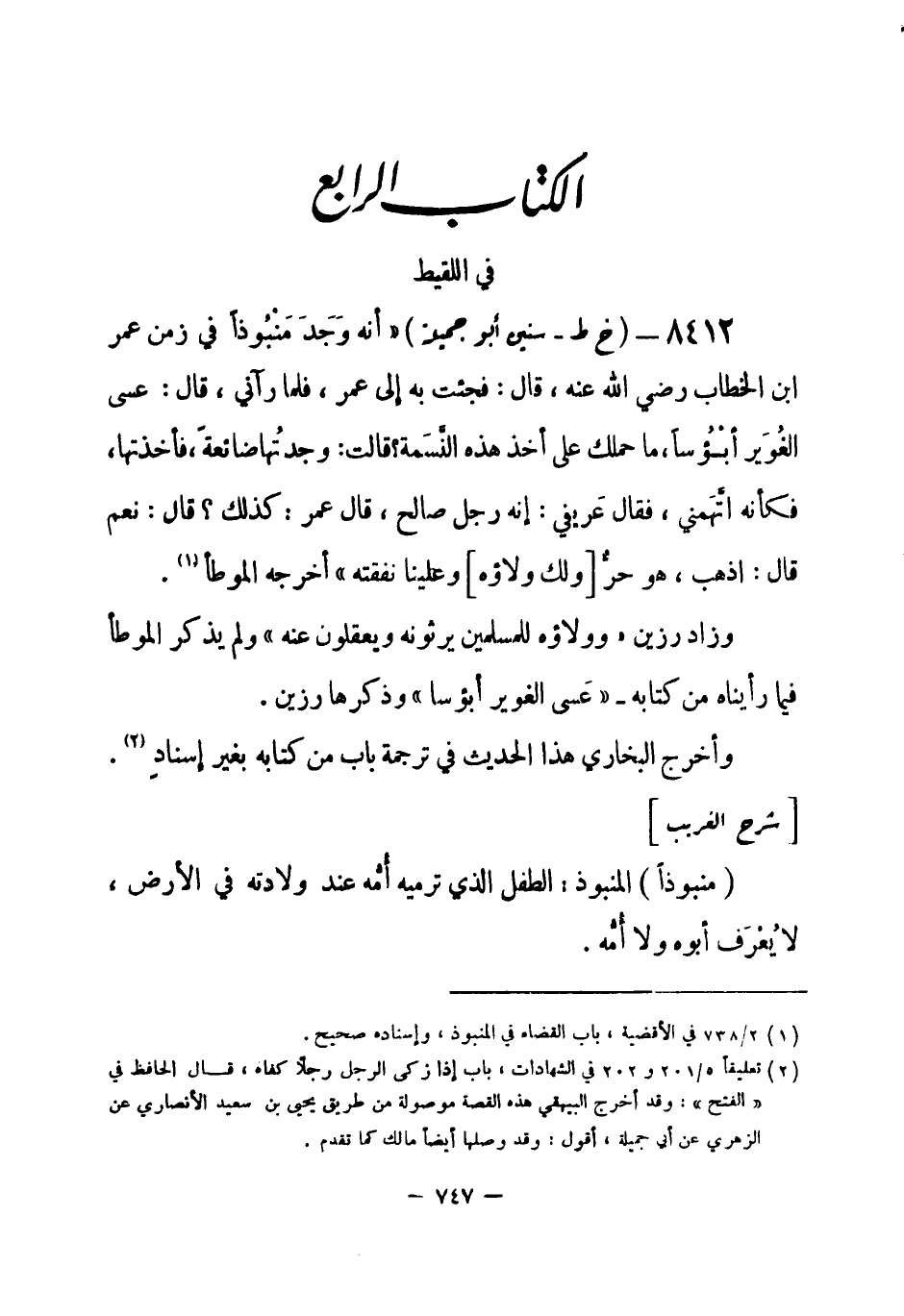 (¬1) 2 / 738 في الأقضية، باب القضاء في المنبوذ، وإسناده صحيح.
