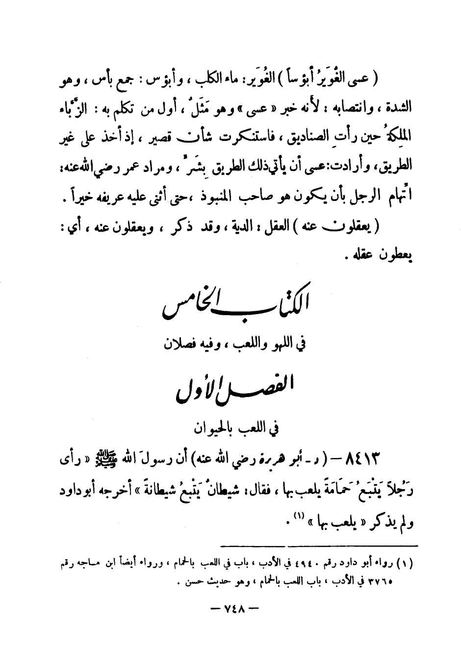 الكتاب الخامس: في اللهو واللعب، وفيه فصلان
