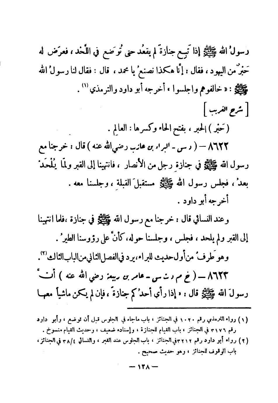 (¬1) رواه أبو داود رقم (3212) في الجنائز، باب الجلوس عند القبر، والنسائي 4 / 38 في الجنائز، باب الوقوف للجنائز، وهو حديث صحيح.