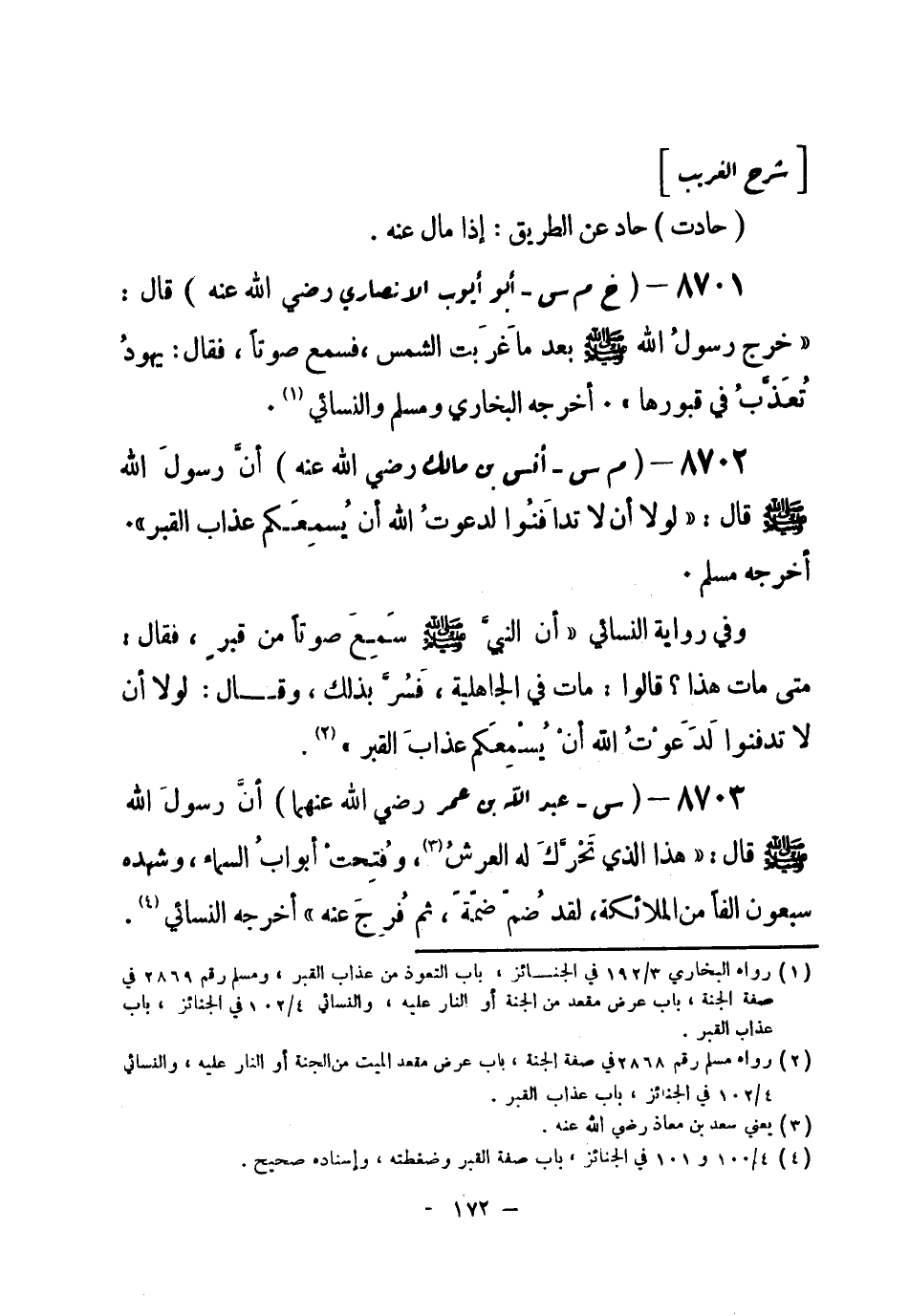 (¬1) رواه مسلم رقم (2868) في صفة الجنة، باب عرض مقعد الميت من الجنة أو النار عليه، والنسائي 4 / 102 في الجنائز، باب عذاب القبر.