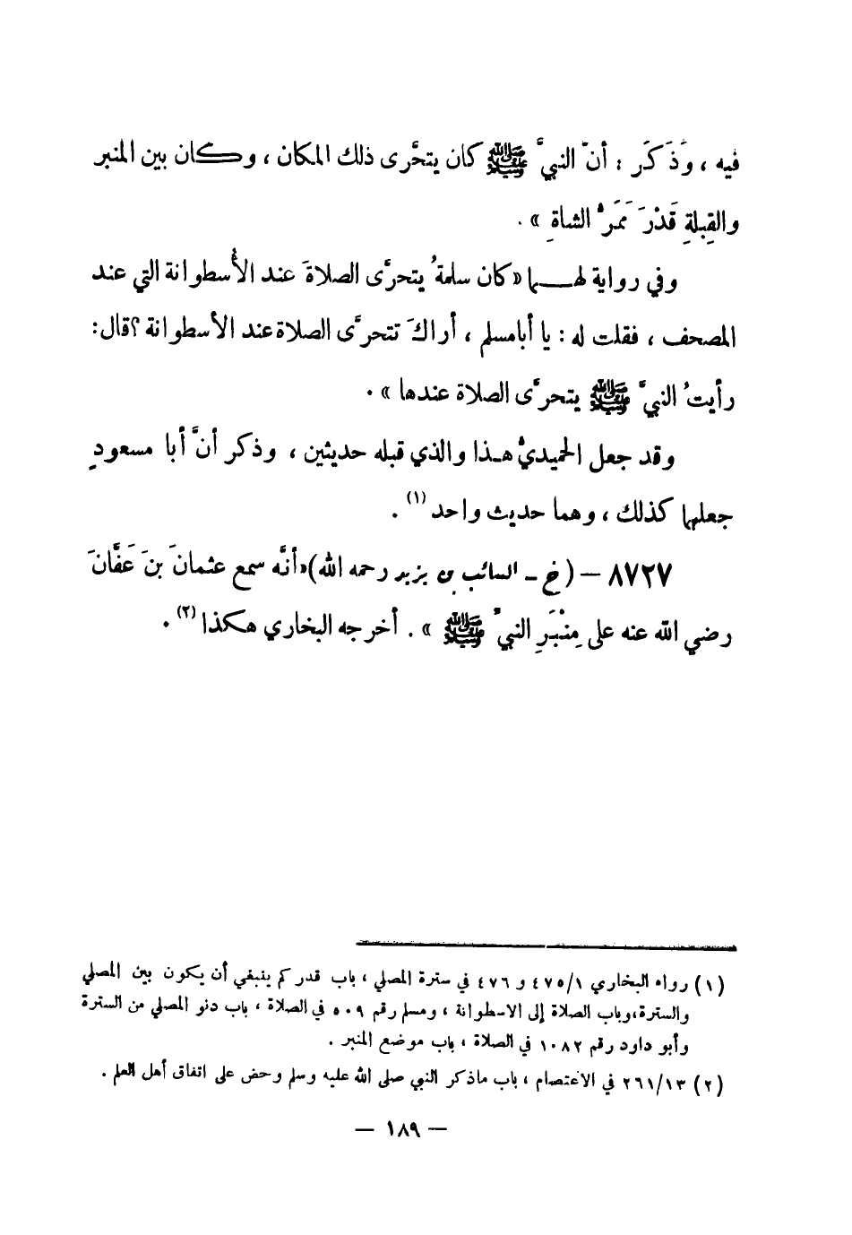 8727 - (خ) السائب بن يزيد - رحمه الله- «أنَّه سمع عثمانَ بنَ عَفَّانَ - رضي الله عنه- على مِنْبَرِ النبيِّ - صلى الله عليه وسلم-» . أخرجه البخاري هكذا (¬1) .