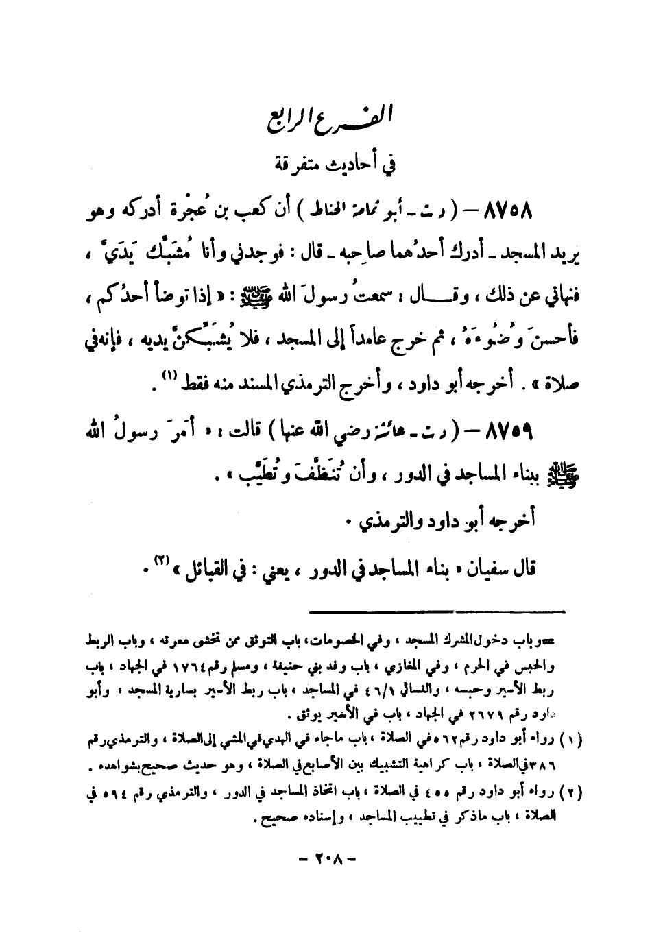 (¬1) رواه أبو داود رقم (455) في الصلاة، باب اتخاذ المساجد في الدور، والترمذي رقم (594) في الصلاة، باب ما ذكر في تطييب المساجد، وإسناده صحيح.