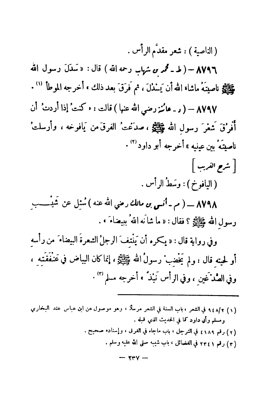 (¬1) رقم (2341) في الفضائل، باب شيبه صلى الله عليه وسلم.