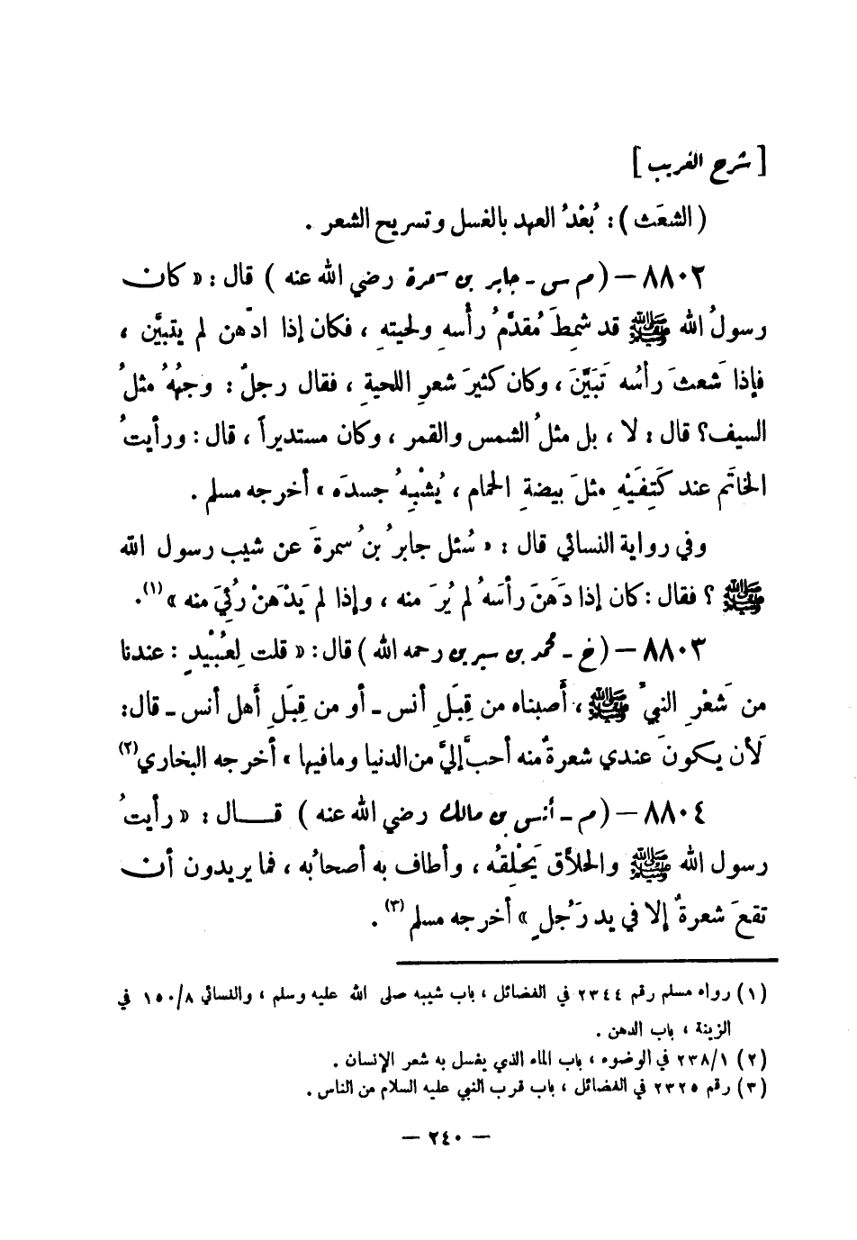 (¬1) رواه مسلم رقم (2344) في الفضائل، باب شيبه صلى الله عليه وسلم، والنسائي 8 / 150 في الزينة، باب الدهن.