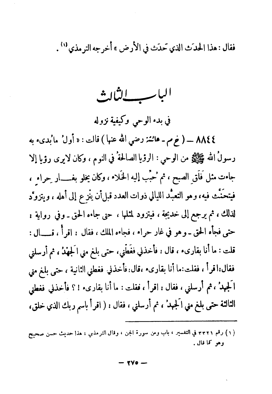 الباب الثالث: في بدء الوحي وكيفية نزوله