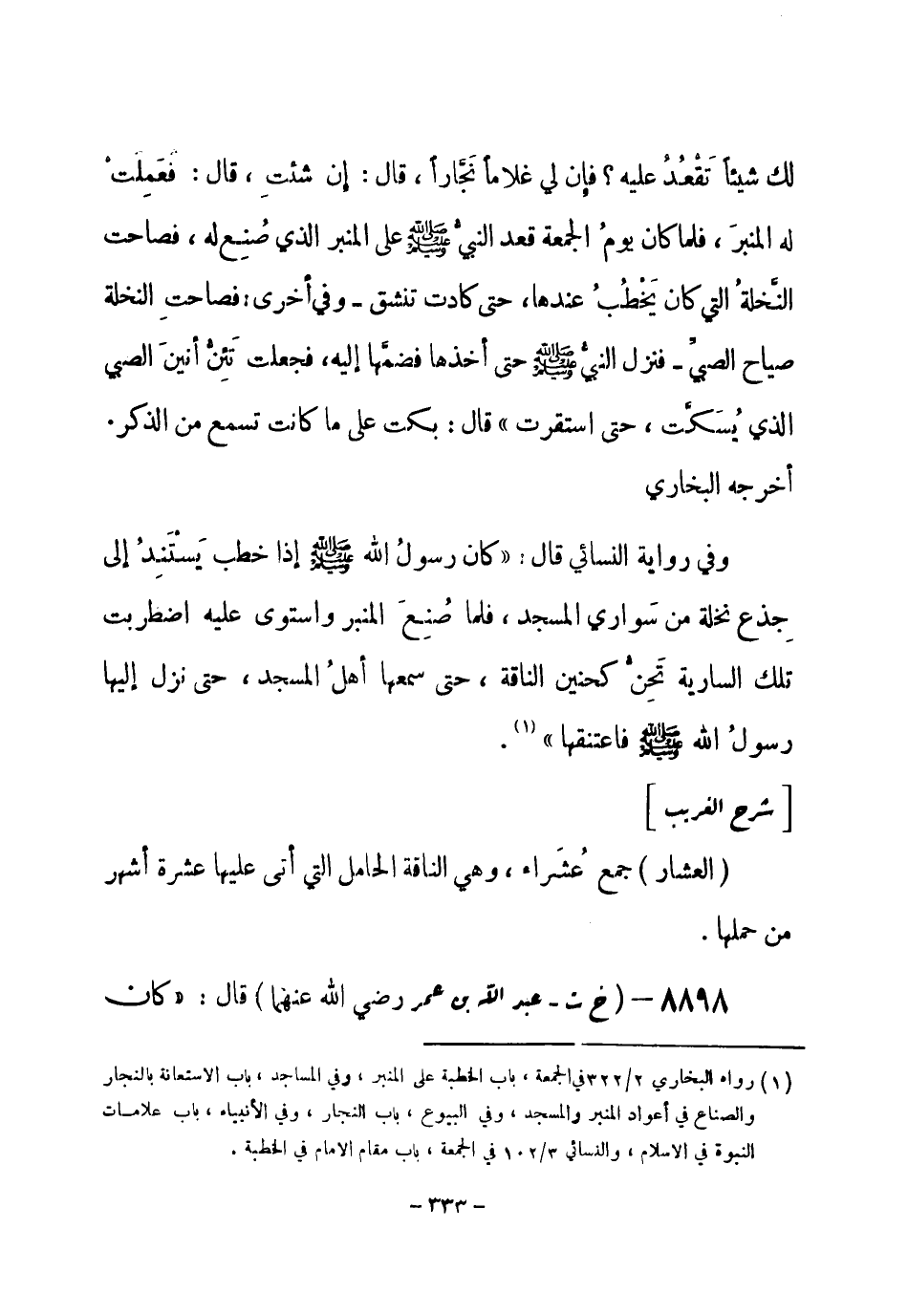 (¬1) رواه البخاري 6 / 331 و 332 في الأنبياء، باب علامات النبوة في الإسلام، والترمذي رقم (505) في الصلاة، باب ما جاء في الخطبة على المنبر.