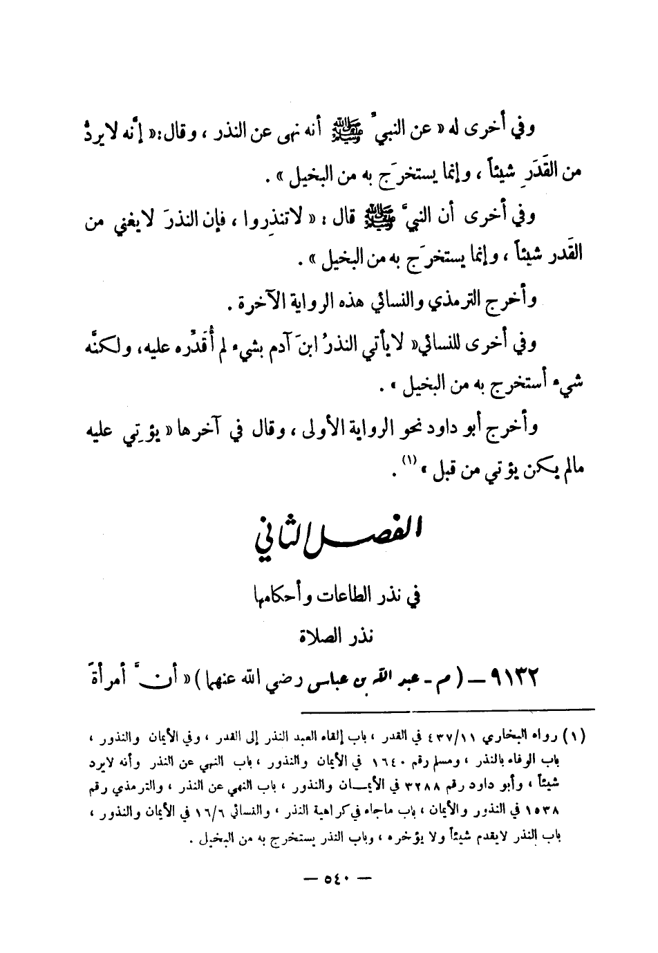 الفصل الثاني: في نذر الطاعات وأحكامها