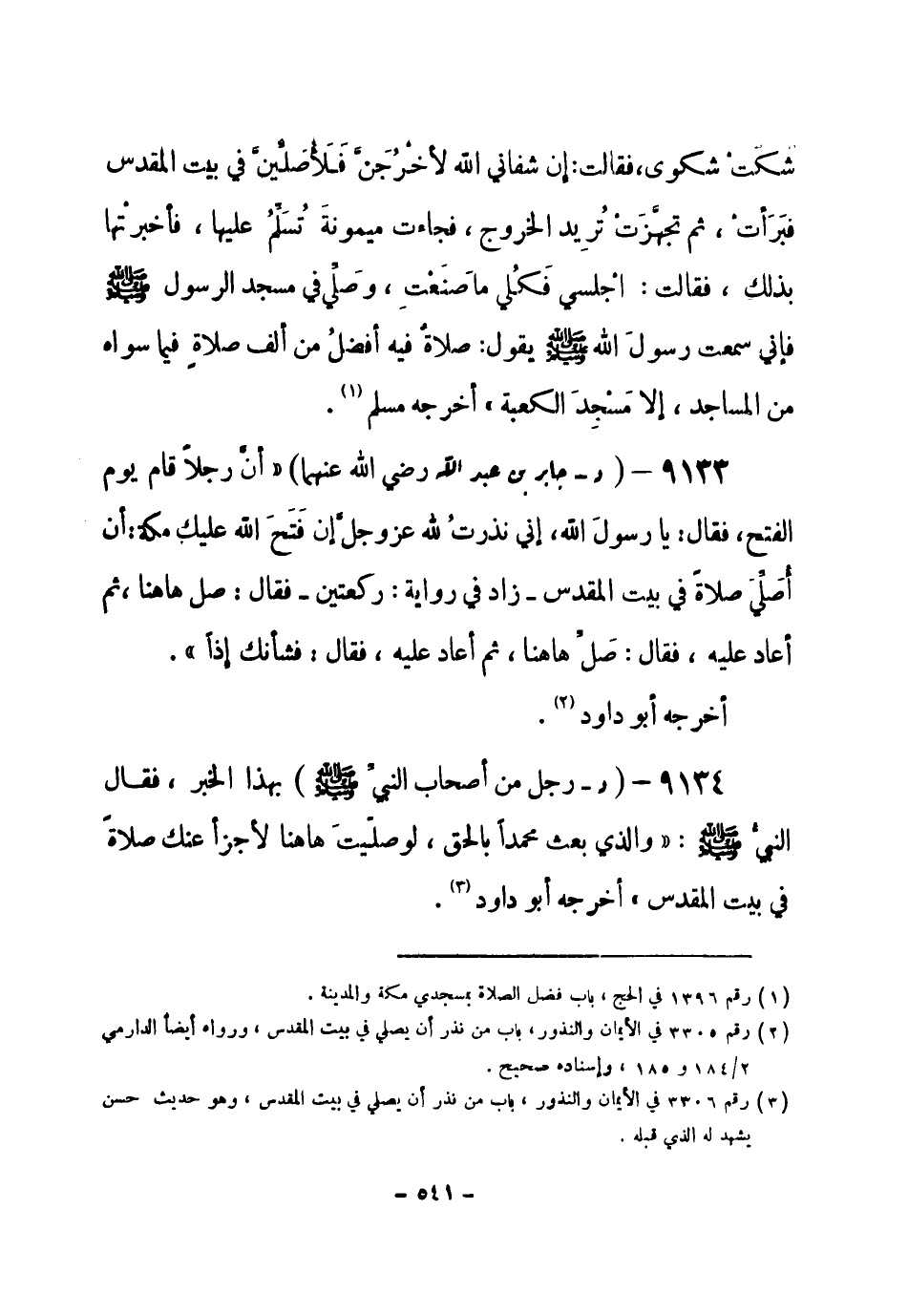 (¬1) رقم (3306) في الأيمان والنذور، باب من نذر أن يصلي في بيت المقدس، وهو حديث حسن يشهد له الذي قبله.