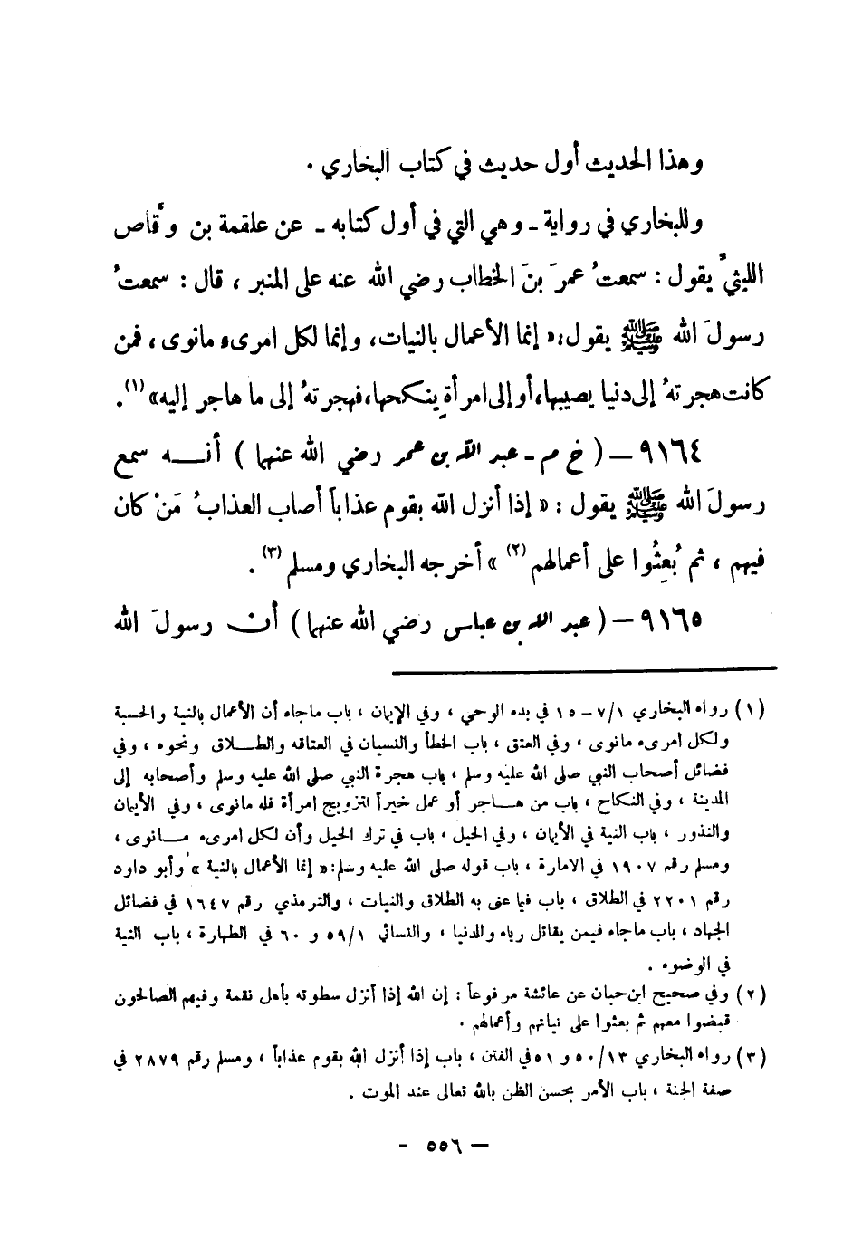 9164 - (خ م) عبد الله بن عمر - رضي الله عنهما - أنه سمع رسول الله - صلى الله عليه وسلم- يقول: «إذا أنزل الله بقوم عذاباً أصاب العذابُ مَنْ كان فيهم، ثم بُعِثُوا على أعمالهم (¬1) » أخرجه البخاري ومسلم (¬2) .