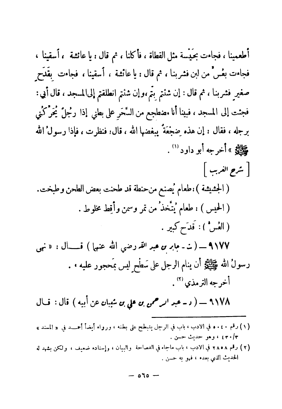 (¬1) رقم (5041) في الأدب، باب في النوم على سطح غير حجار، وإسناده ضعيف، ولكن له شاهد عن بعض أصحاب رسول الله صلى الله عليه وسلم عند أحمد 4 / 79 و 5 / 271، والبخاري في " الأدب المفرد " رقم (1194) ، وإسناده قوي، ويشهد له أيضاً حديث جابر الذي قبله فهو حديث صحيح لغيره.