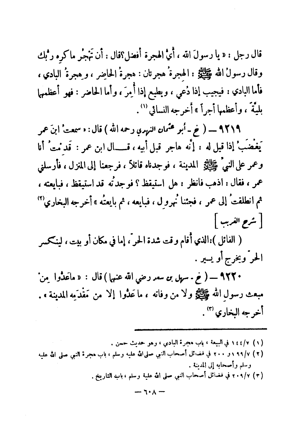 (¬1) 7 / 199 و 200 في فضائل أصحاب النبي صلى الله عليه وسلم، باب هجرة النبي صلى الله عليه وسلم وأصحابه إلى المدينة.