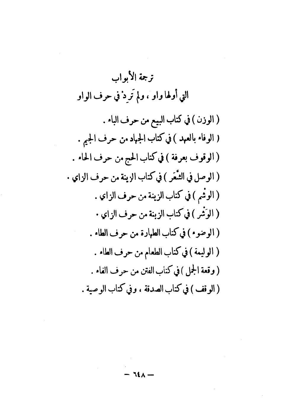 ترجمة الأبواب التي أولها واو، ولم تَرِدْ في حرف الواو