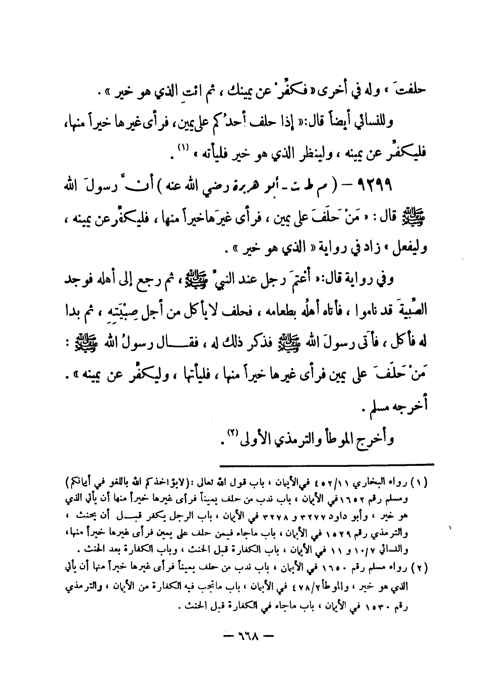 (¬1) رواه مسلم رقم (1650) في الأيمان، باب ندب من حلف يميناً فرأى غيرها خيراً منها أن يأتي الذي هو خير، والموطأ 2 / 478 في الأيمان، باب ما تجب فيه الكفارة من الأيمان، والترمذي رقم (1530) في الأيمان، باب ما جاء في الكفارة قبل الحنث.