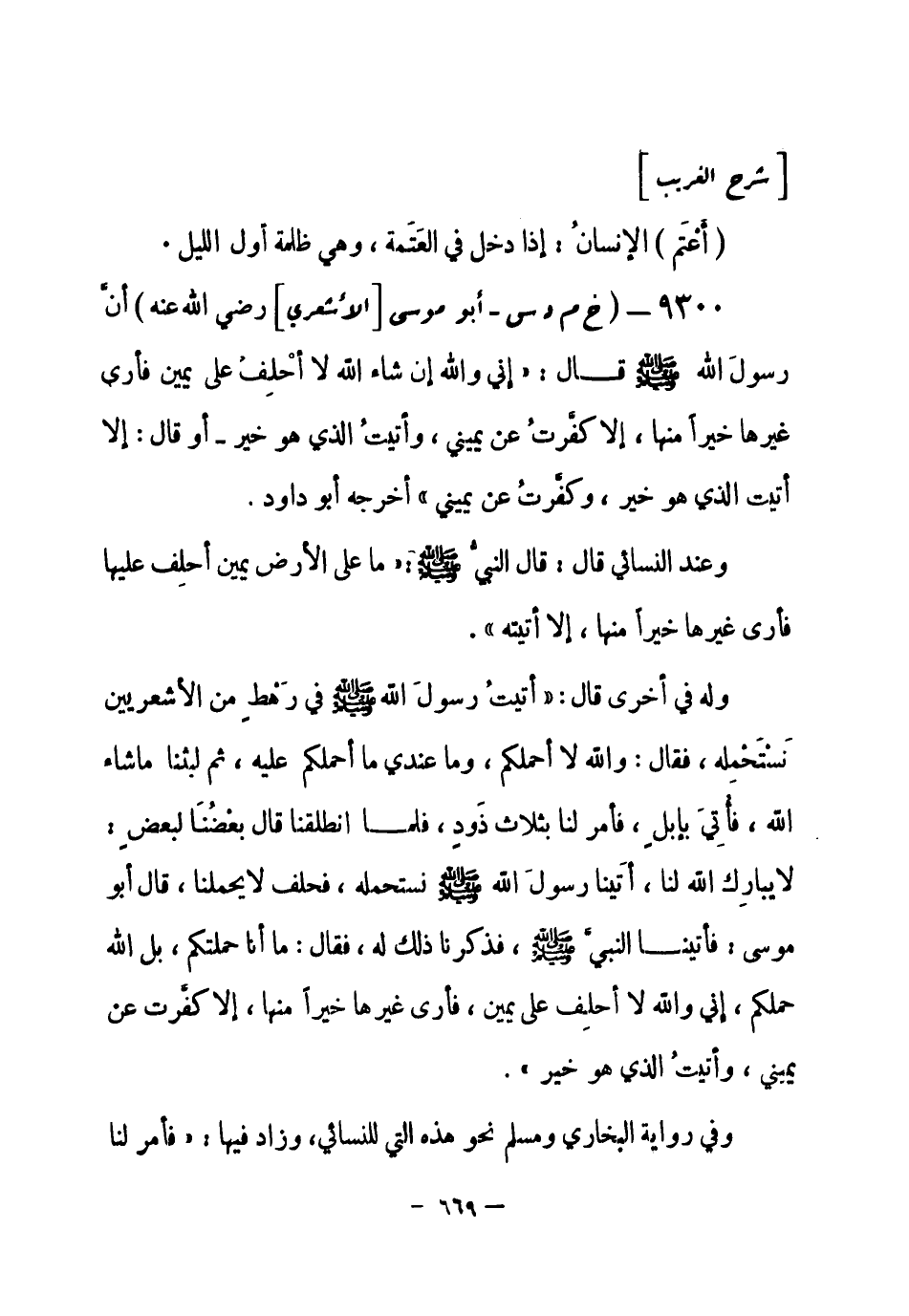 9300 - (خ م د س) أبو موسى [الأشعري]- رضي الله عنه - أنَّ رسولَ الله - صلى الله عليه وسلم- قال: «إني والله إن شاء الله لا أحْلِفُ على يمين فأرى غيرها خيراً منها، إلا كفَّرتُ عن يميني، وأتيتُ الذي هو خير - أو قال: إلا أتيت الذي هو خير، وكفَّرت عن يميني» . أخرجه أبو داود.